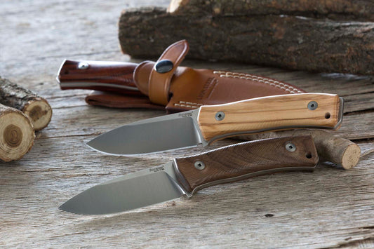 LionSteel M4 3.74" M390 Walnut Wood Fixed Blade Bushcraft Knife with Leather Sheath