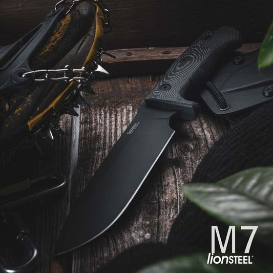 LionSteel M7 7.09" Black Sleipner Micarta Fixed Blade Knife with Kydex Sheath