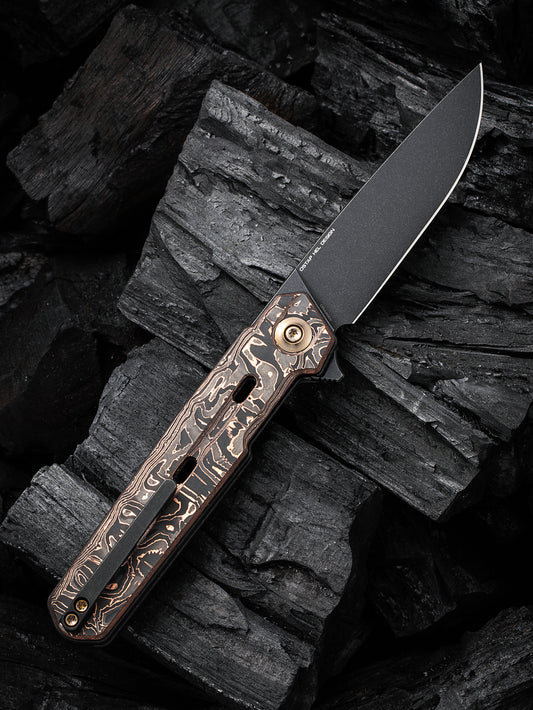 WE Nitro Mini 3.13" CPM 20CV Black Copper Foil Carbon Fiber Titanium Folding Knife by Peter Carey WE22015-2