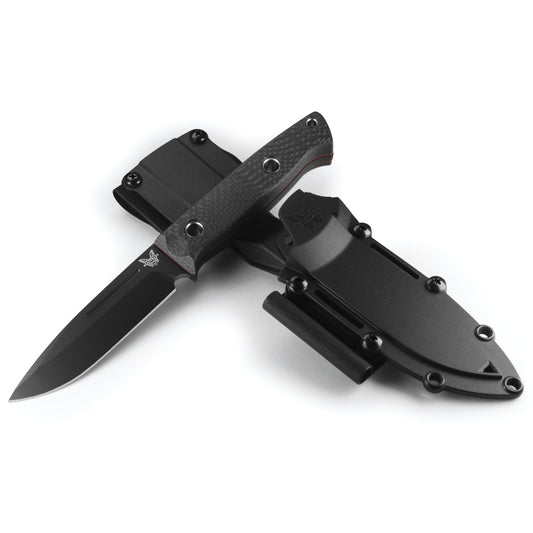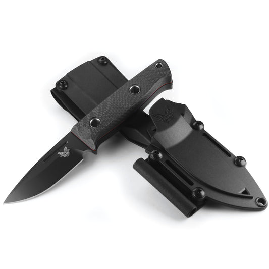 Benchmade 163BK Sibert Bushcrafter 4.38" CPM-CruWear Black Cerakote Fixed Blade Knife with Carbon Fiber Handles