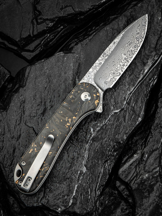Civivi Elementum II Button Lock 2.96" Damascus Carbon Fiber Golden Shred Folding Knife C18062P-10