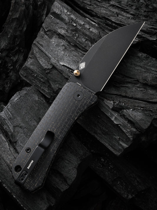 WE Knife Banter Wharncliffe 2.85" CPM S35VN Black Burlap Micarta Folding Knife WE19068J-1