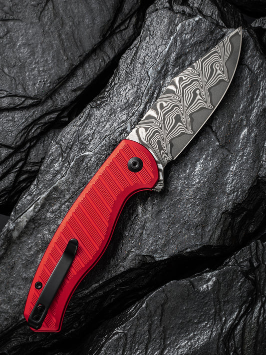 Civivi Stormhowl 3.3" Damascus Milled Red Aluminium Button Lock Folding Knife C23040B-DS1