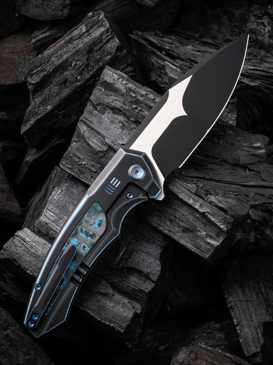 WE Hyperactive 3.8" Vanax Blue/Black Arctic Storm Fat Carbon Fiber Titanium Folding Knife WE23030-3