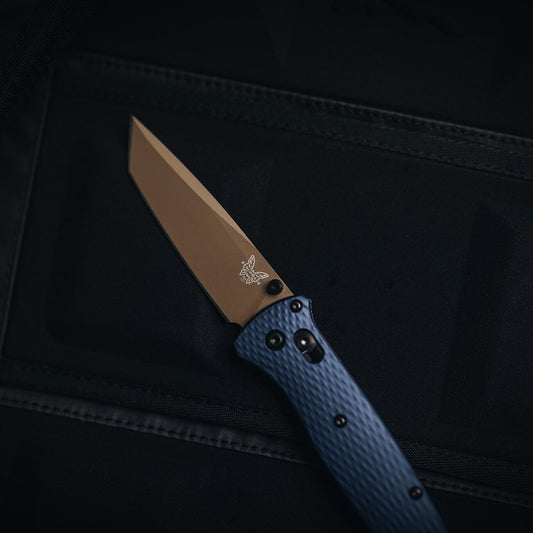 Benchmade 537FE-02 Bailout 3.38" CPM-M4 FDE Tanto Folding Knife with Crater Blue Aluminum Handle