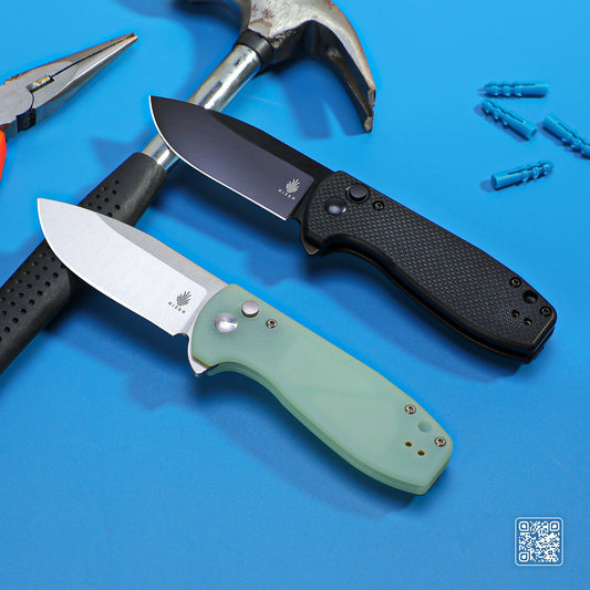 Kizer Amicus 2.95" 9Cr18MoV Jade G10 Button-Lock Folding Knife L3002A2