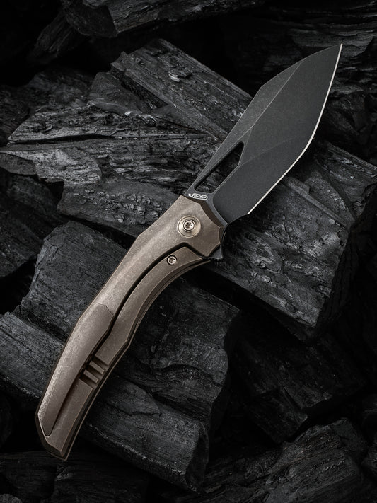 WE Ignio 3.3" CPM 20CV Black Stonewashed Titanium Folding Knife by Toni Tietzel WE22042B-1