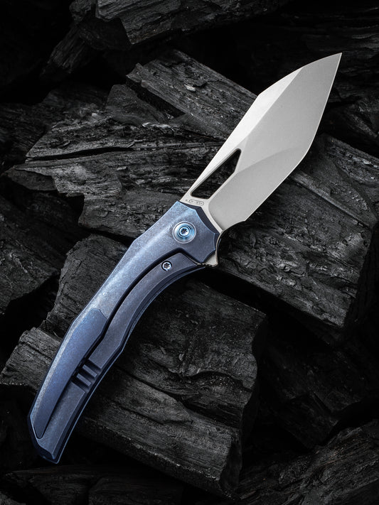 WE Ignio 3.3" CPM 20CV Stonewashed Blue Titanium Folding Knife by Toni Tietzel WE22042B-3