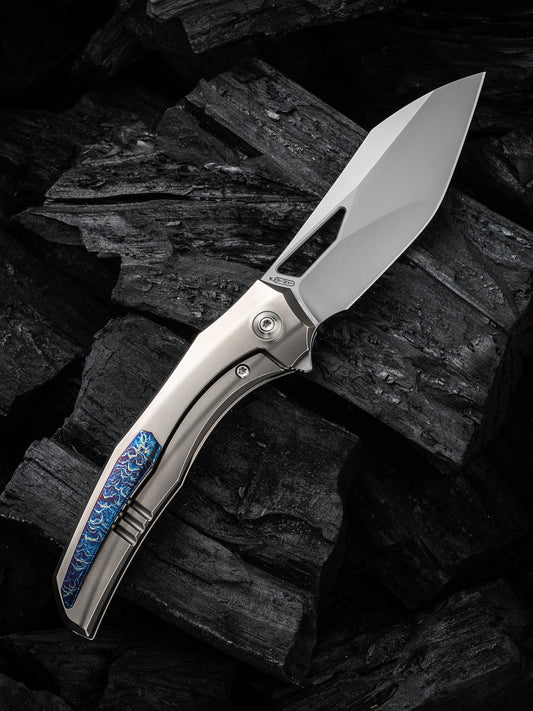 WE Ignio 3.3" CPM 20CV Polished Bead Blasted Titanium Folding Knife by Toni Tietzel WE22042B-4