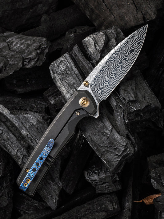 LionSteel Myto 3.27" Chad Nichols Scrambled Damascus Folding Knife with Blue Titanium HandleVendor:LionSteelRegular price S$479.90 SGDRegular priceUnit price per