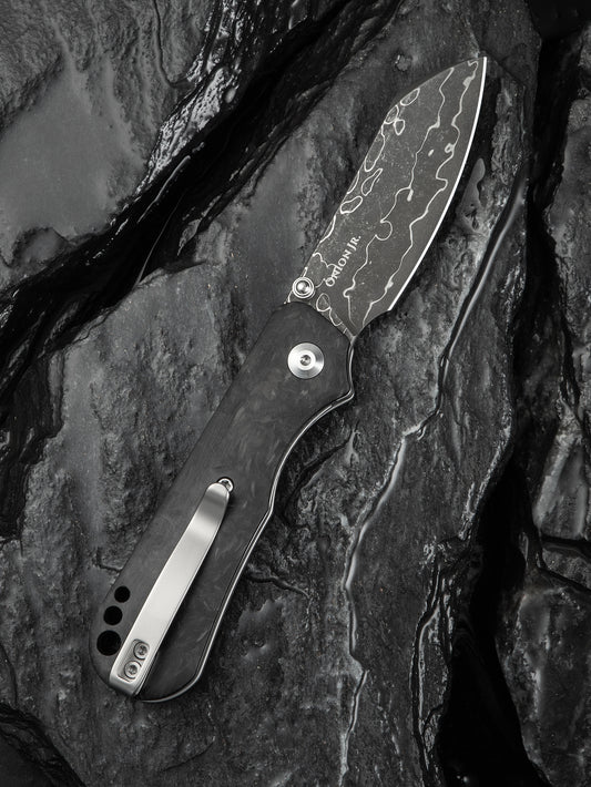 Civivi Crabby 2.7" Damascus Shredded Carbon Fiber Folding Knife by Ken Onion Jr C24055-DS1