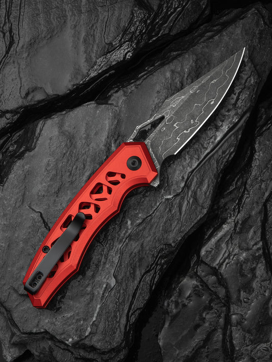 Civivi Anaaki 2.98" Damascus Red Aluminium Button Lock Folding Knife C24039-DS1