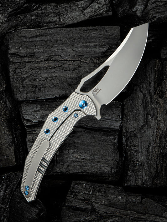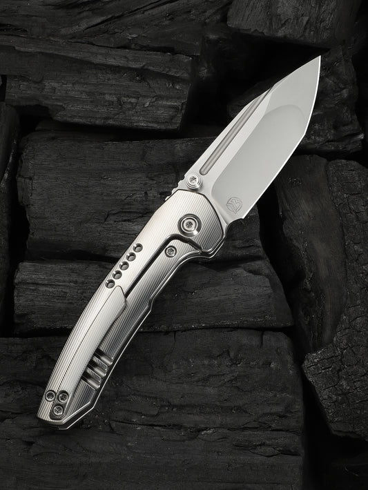 WE Epaulette 3.45" M390 Polished Bead Blasted Titanium Folding Knife by Gavko Knives WE24024-3