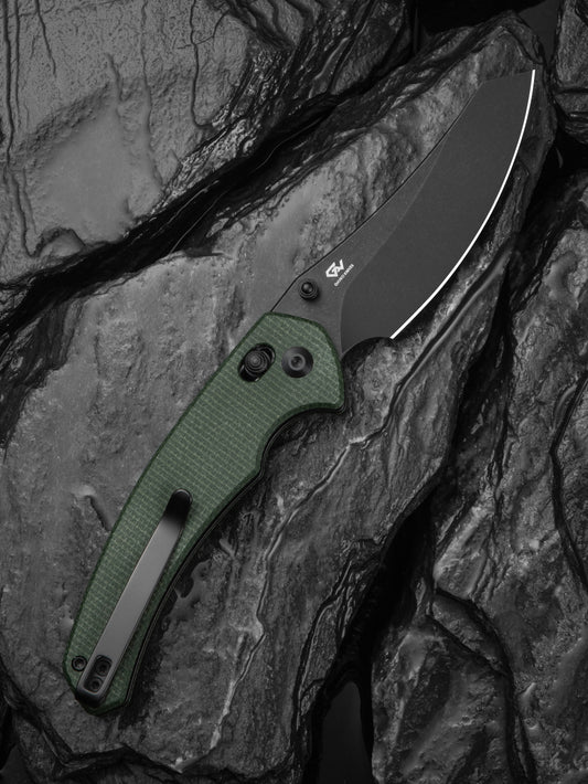 Civivi Sixgill 3.41" Nitro-V Green Canvas Micarta Crossbar Lock Folding Knife by Gavko Knives C24050-3