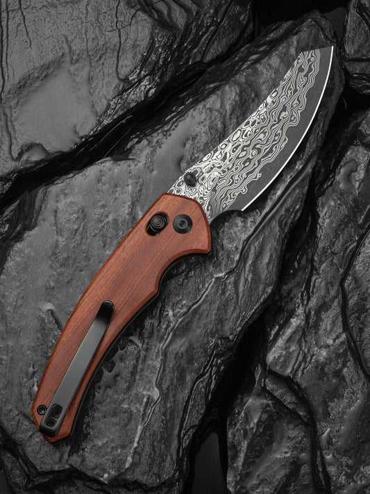 Civivi Sixgill 3.41" Damascus Guibourtia Wood Crossbar Lock Folding Knife by Gavko Knives C24050-DS1