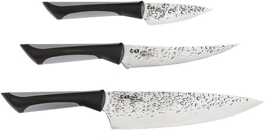 KAI Luna 3 Piece Essential Kitchen Knife Set with Hammered Finish and Sheath ABS0370
