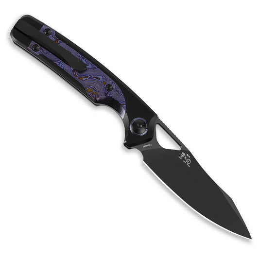 Kizer Ara 3.09" CPM Cruwear DLC Black Titanium Purple Timascus Folding Knife by Jonathan Styles x Paul Munko Ki3729A4
