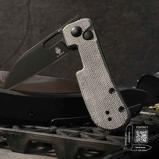 Kizer Bulldog Clutch-Lock 3" 154CM Black Canvas Micarta Folding Knife V3672C2