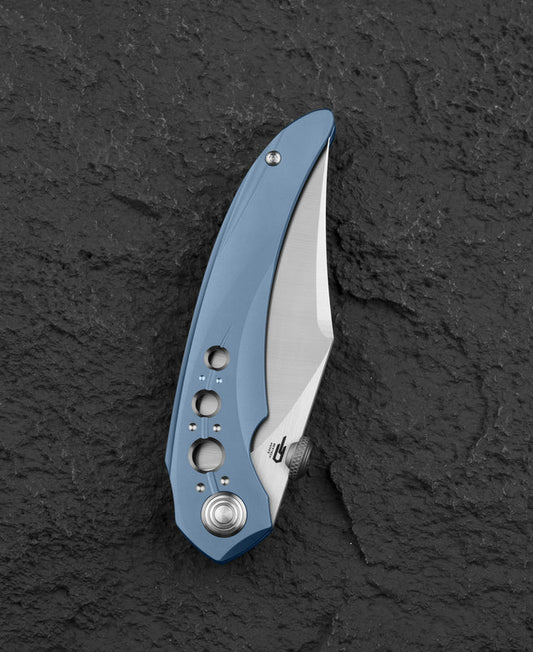 Bestech Razon 3.87" Magnacut Blue Titanium Folding Knife by Kombou BT2406A