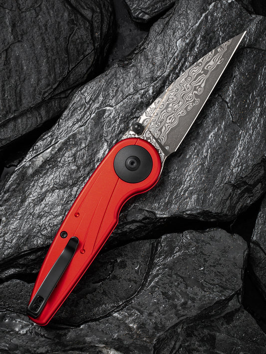 Civivi Starflare 3.3" Damascus Red Aluminium Wharncliffe Button Lock Folding Knife C23052-DS1