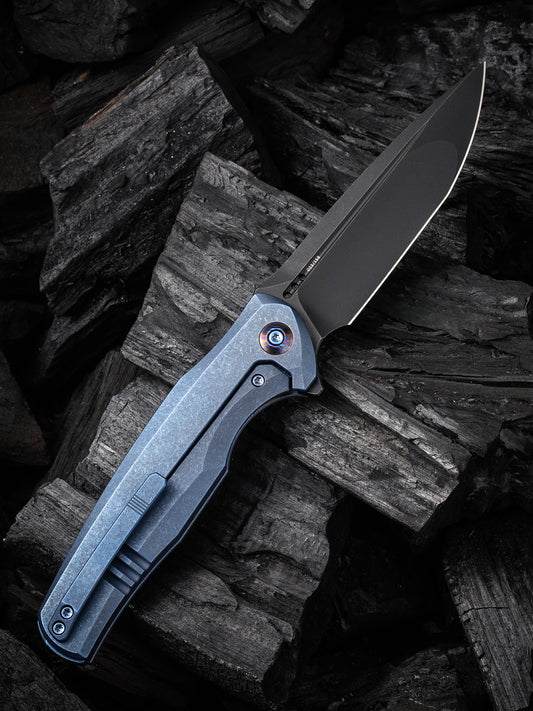 WE 601X Limited Edition 3.82" CPM 20CV Black/Blue Titanium Golden Groove Folding Knife WE01J-3
