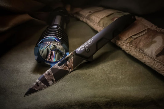 WE Cybernetic Limited Edition 3.91" CPM 20CV Tiger Stripe Flamed Titanium Folding Knife WE22033-3