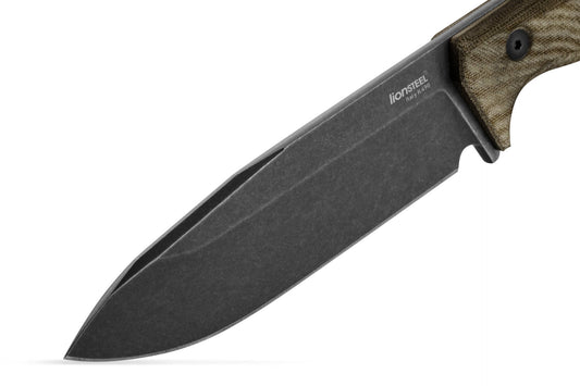 LionSteel M5B CVG 4.53" Black Sleipner Green Canvas Micarta Fixed Blade Bushcraft Knife with Cordura Sheath