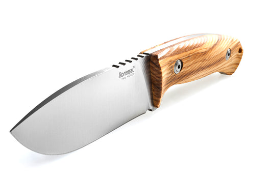 LionSteel M3 4.13" Niolox Olive Wood Fixed Blade Knife with Leather Sheath