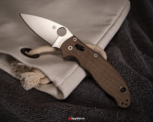 Spyderco Manix 2 3.37" CPM Cru-Wear Brown Canvas Micarta Folding Knife C101MPCW2