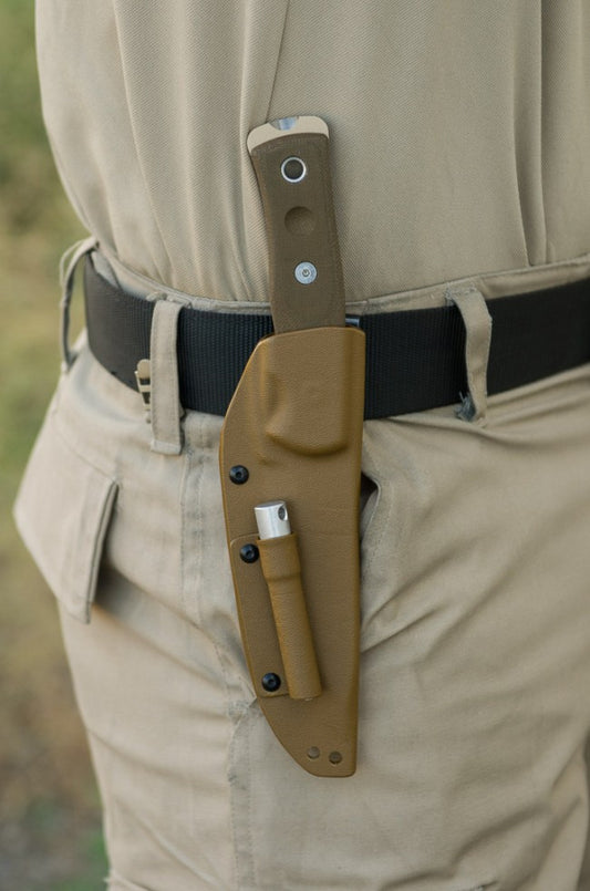 TOPS Knives Fieldcraft Knife by Brothers of Bushcraft - Coyote Tan with Green Canvas Micarta Handle