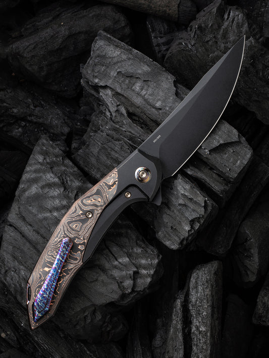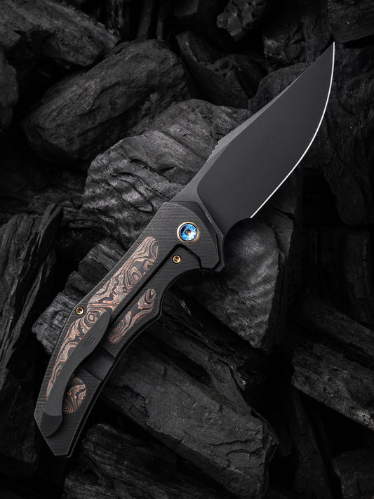 WE Merata Limited Edition 3.68" CPM 20CV Black Copper Foil Carbon Fiber Titanium Folding Knife by Anton Tkachenko WE22008B-1