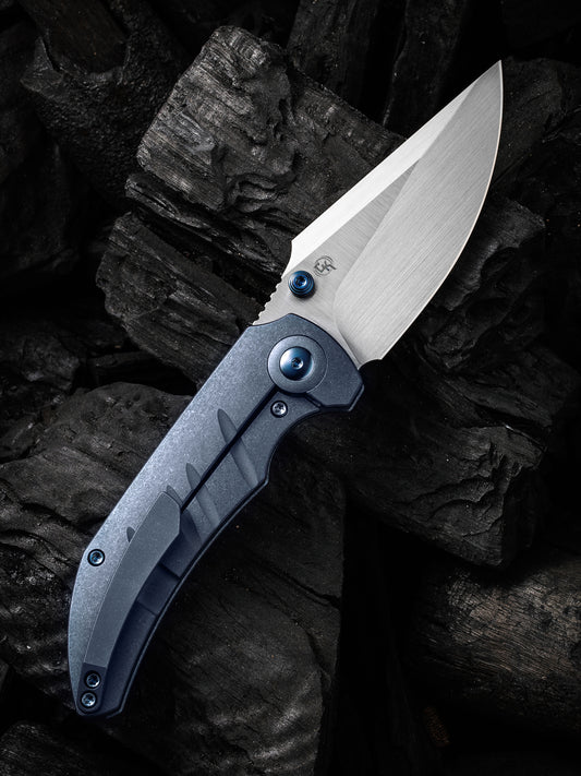 WE Riff-Raff 3.12" CPM 20CV Blue Titanium Folding Knife by Matthew Christensen WE22020B-2