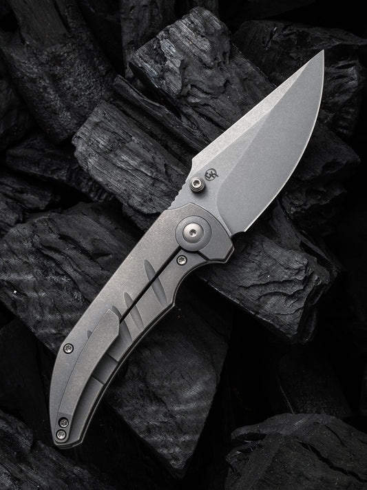 WE Riff-Raff 3.12" CPM 20CV Stonewashed Gray Titanium Folding Knife by Matthew Christensen WE22020B-3