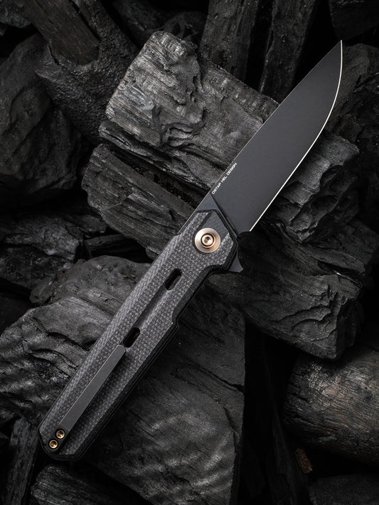 WE Exciton Limited Edition 3.68" CPM 20CV Black/Black Twill Carbon Fiber Integral Spacer Folding Knife WE22038A-2