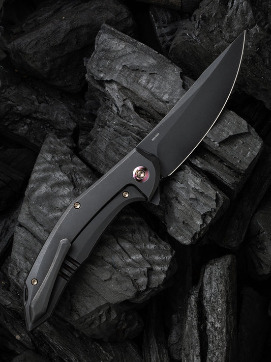 WE Merata Limited Edition 3.68" CPM 20CV Black/Black Titanium Folding Knife by Anton Tkachenko WE22008A-1