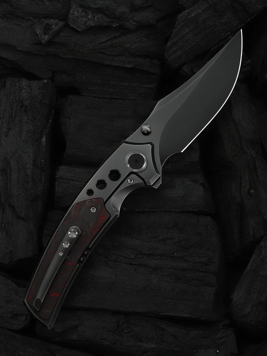 WE Orc Boss 3.82" CPM 20CV Shredded Carbon Fiber Black Titanium Folding Knife WE24042-1