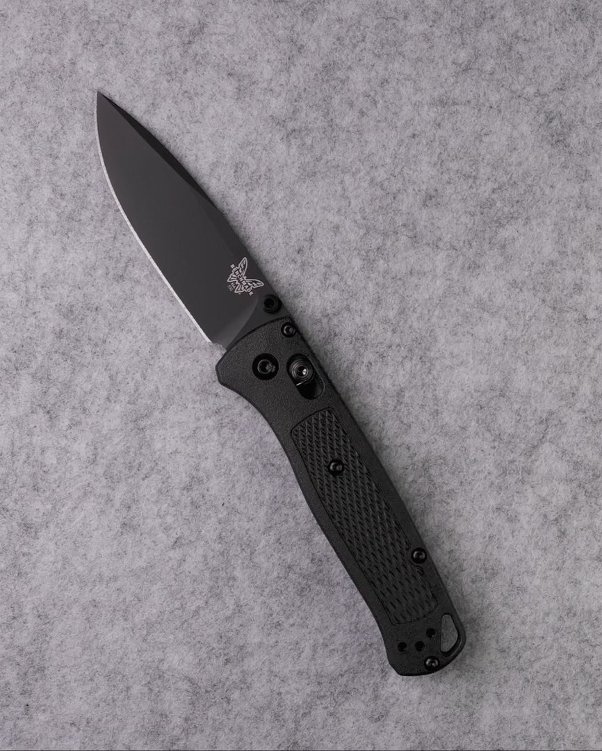 The Bugout® they’ve all been waiting for. Blacked out from tip to tail, this Bugout® will be a favorite amongst customers of all lifestyles. Re-engineered with Benchmade’s new CF-Elite™ (Carbon Fiber reinforced nylon polymer) handle technology, the 535BK-2 weighs in slightly lighter than its predecessors, yet boasts greater rigidity under pressure. Just when you thought the Bugout® couldn’t get any lighter. DLC coated titanium AXIS lockbar. Made in USA.