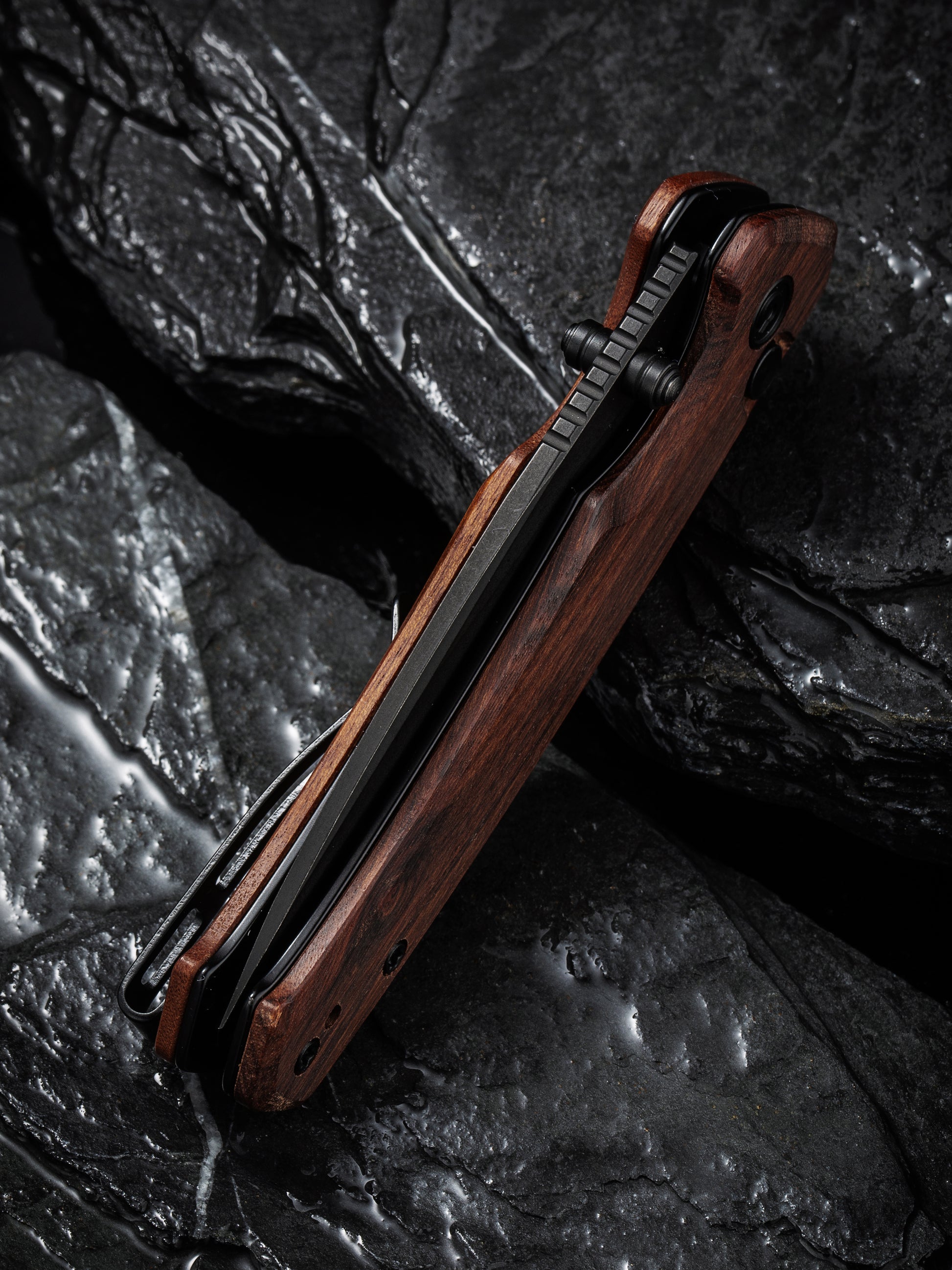Civivi Altus 2.97" Nitro-V Black Stonewashed Guibourtia Wood Button Lock Folding Knife C20076-3