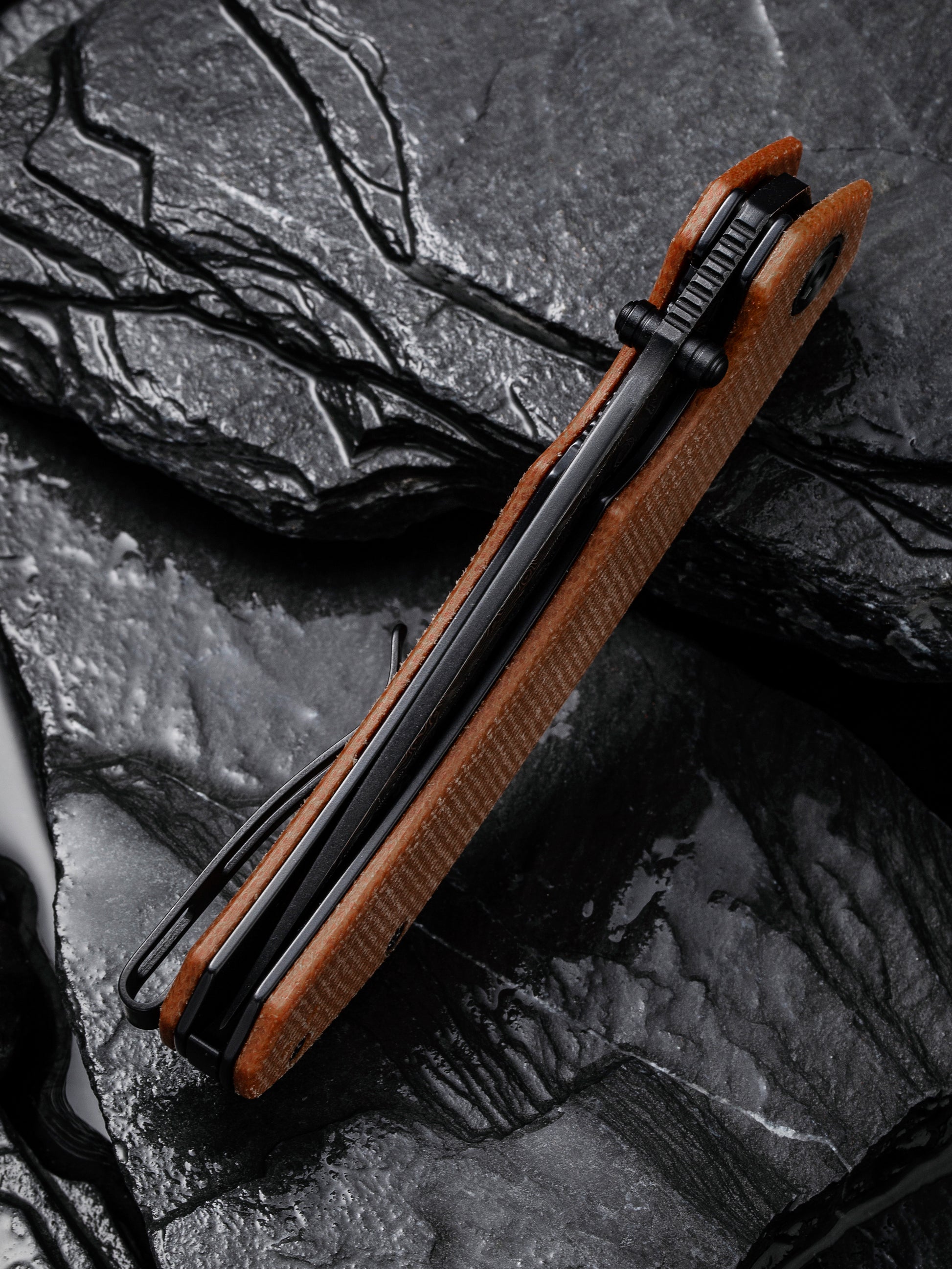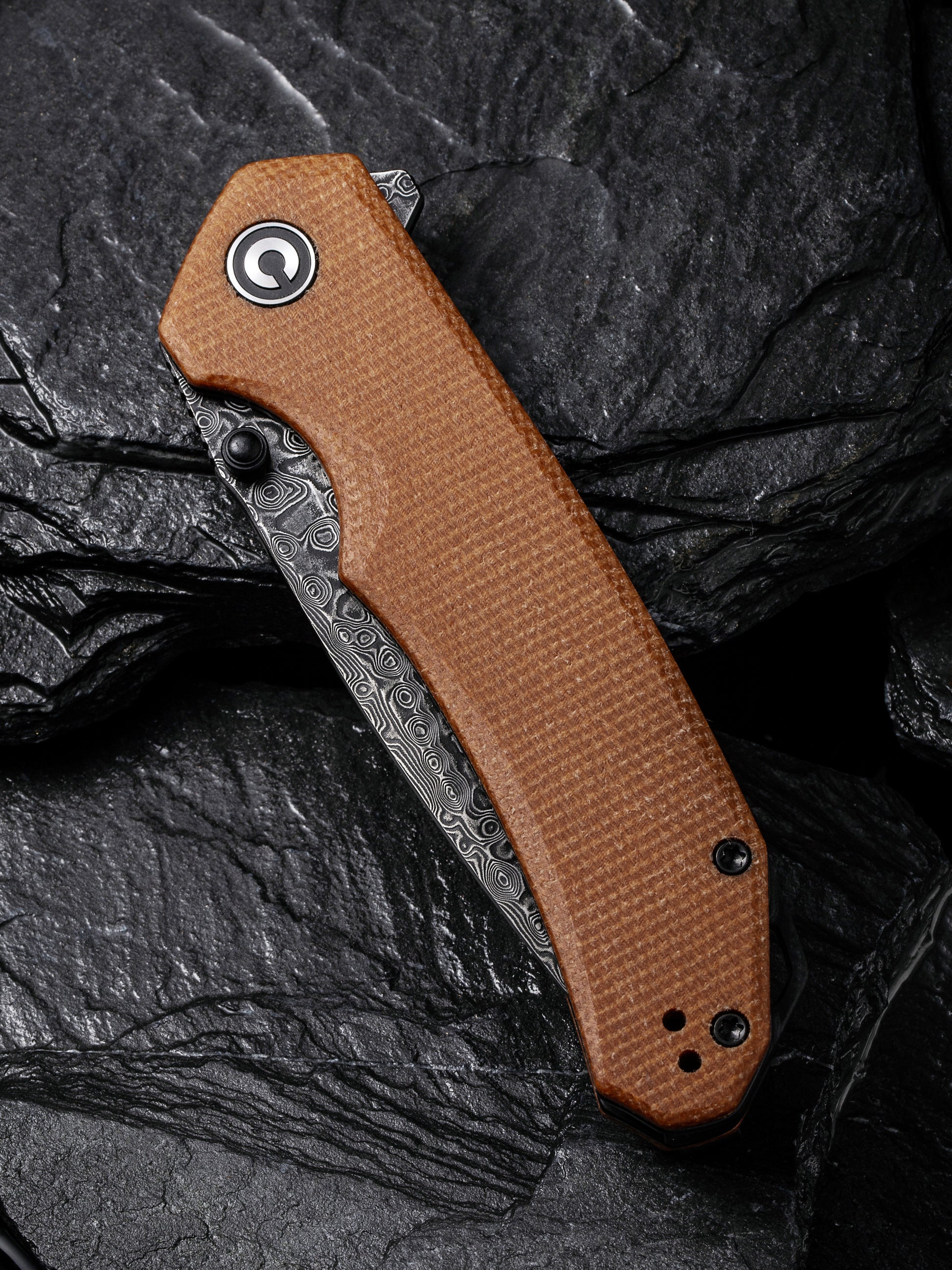 Civivi Brazen 3.46" Black Damascus Brown Micarta Folding Knife C2102DS-1
