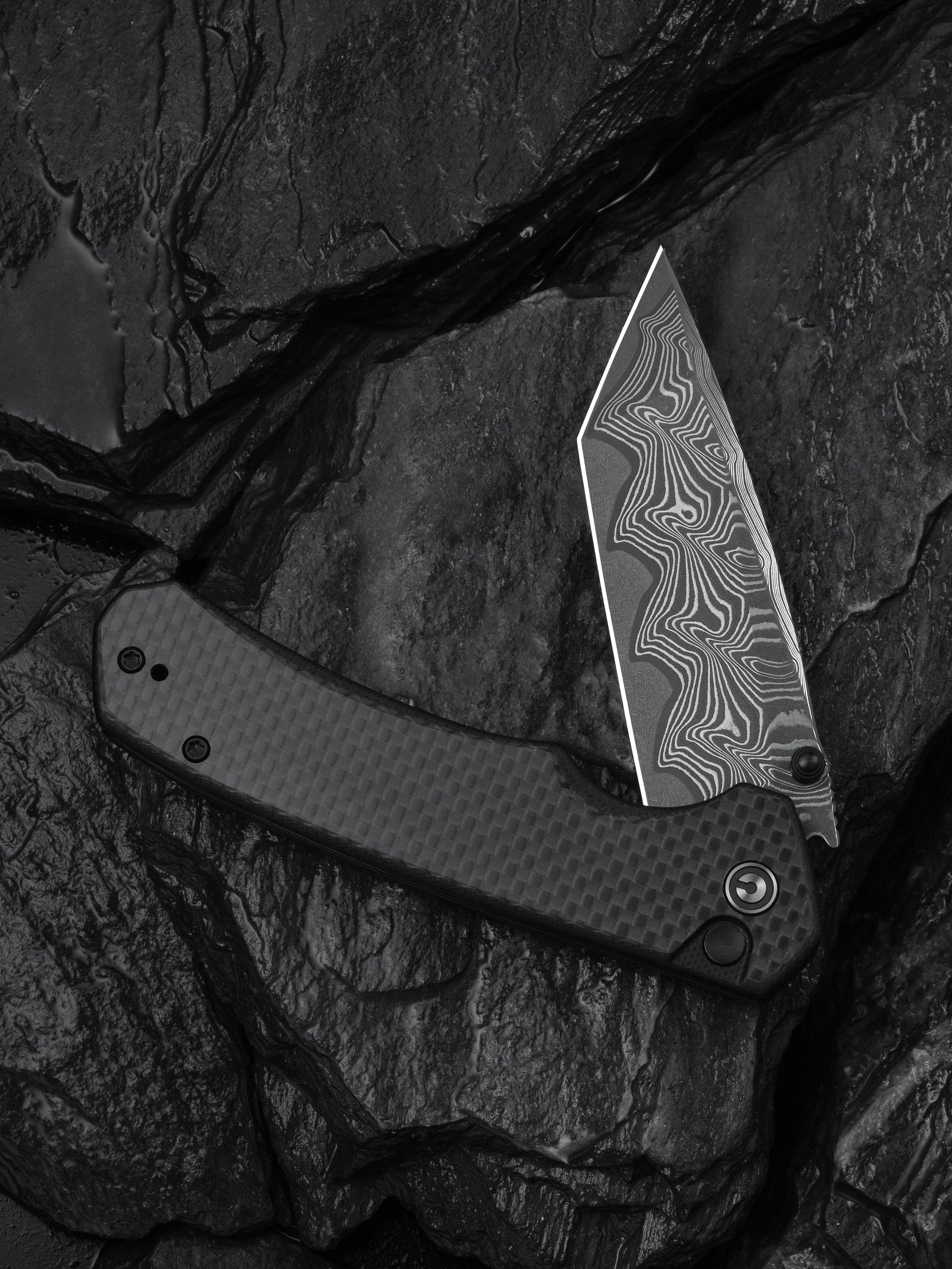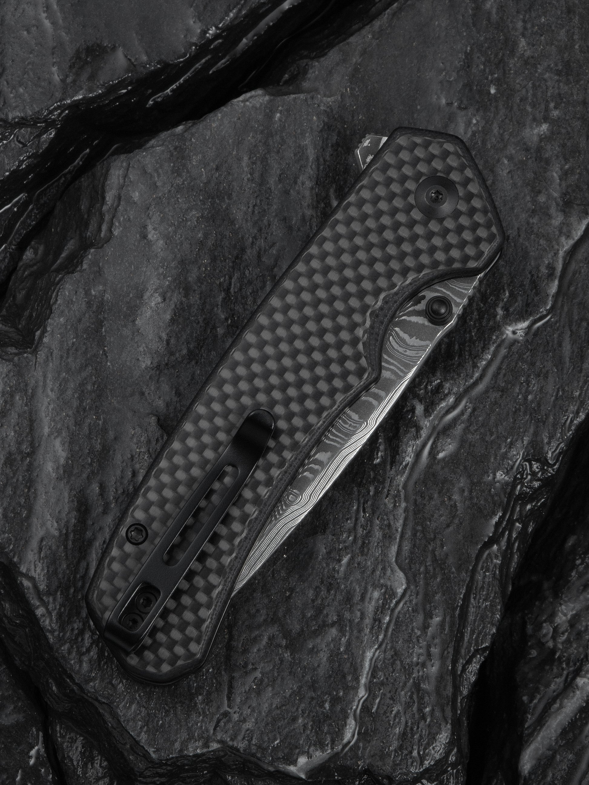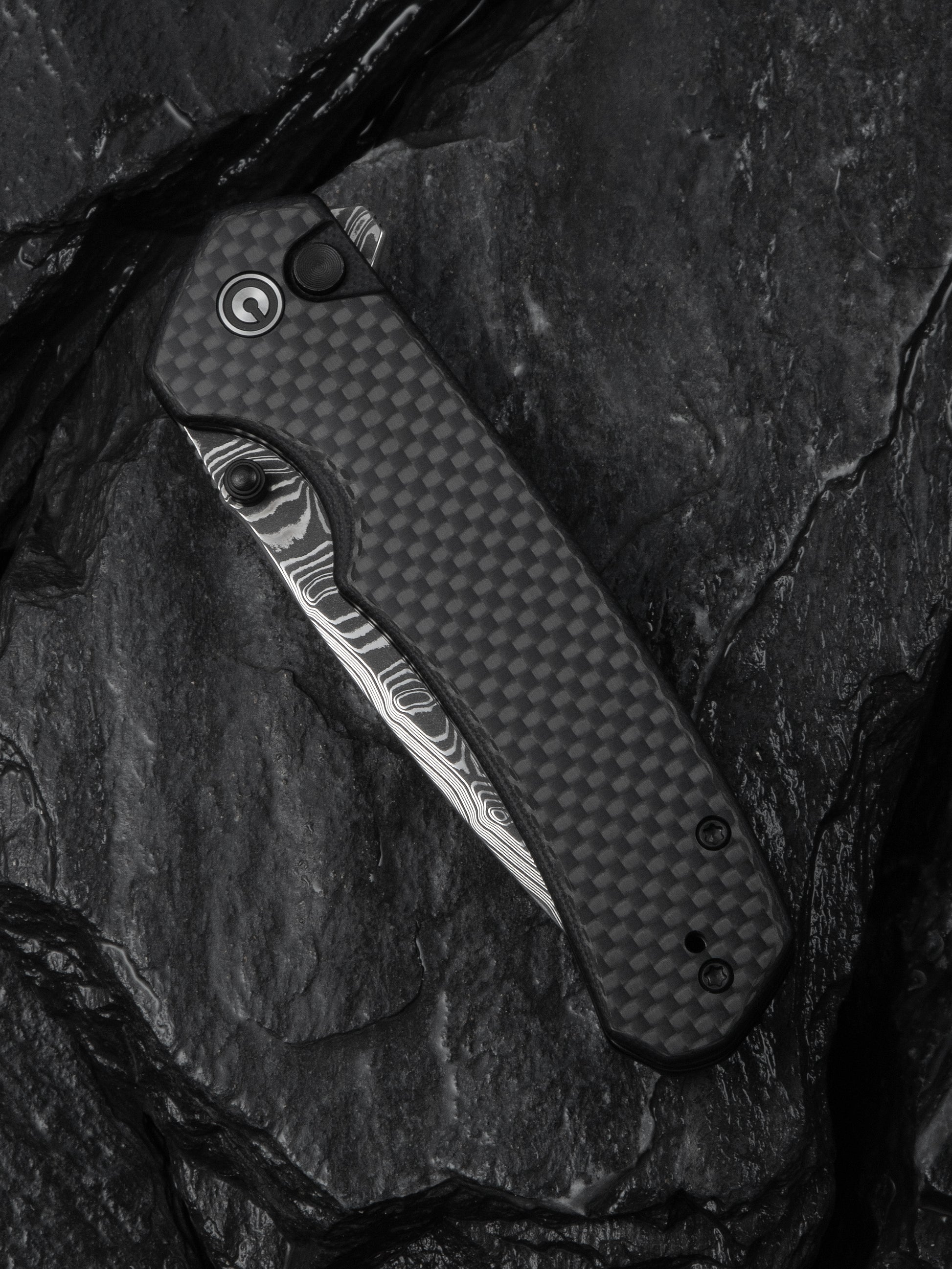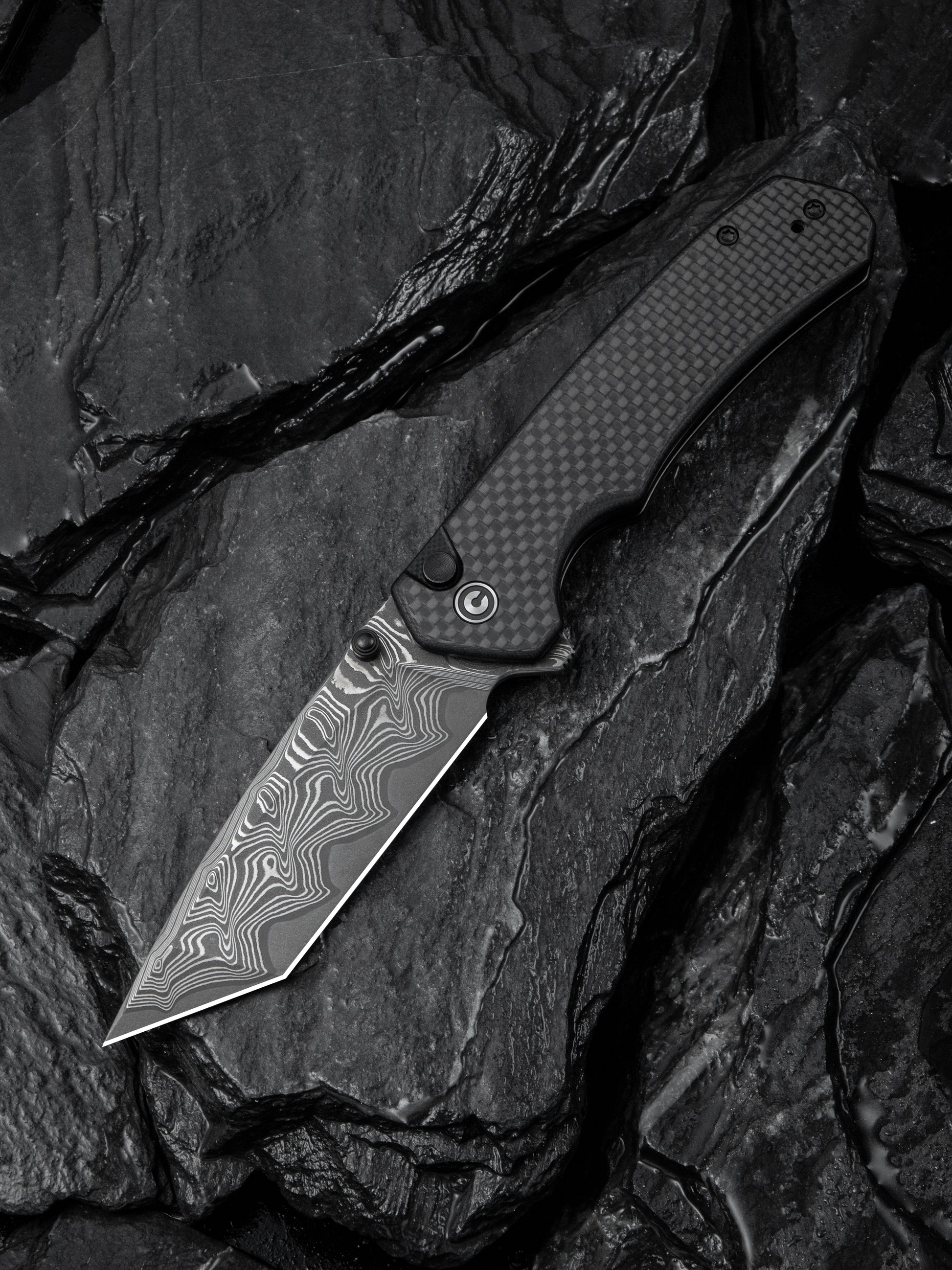 Civivi Brazen Tanto 3.46" Damascus Carbon Fiber G10 Folding Knife C19059C-DS1