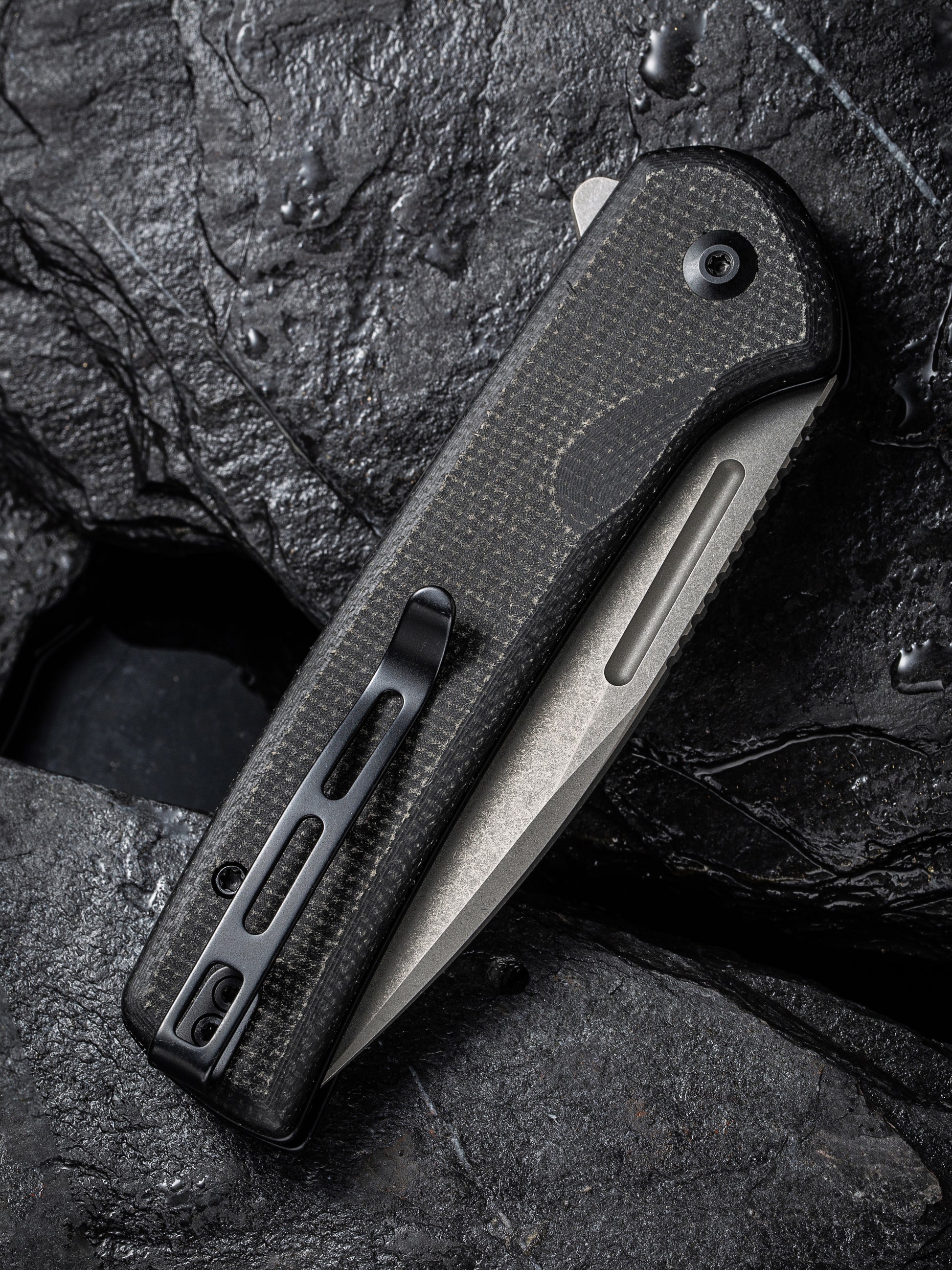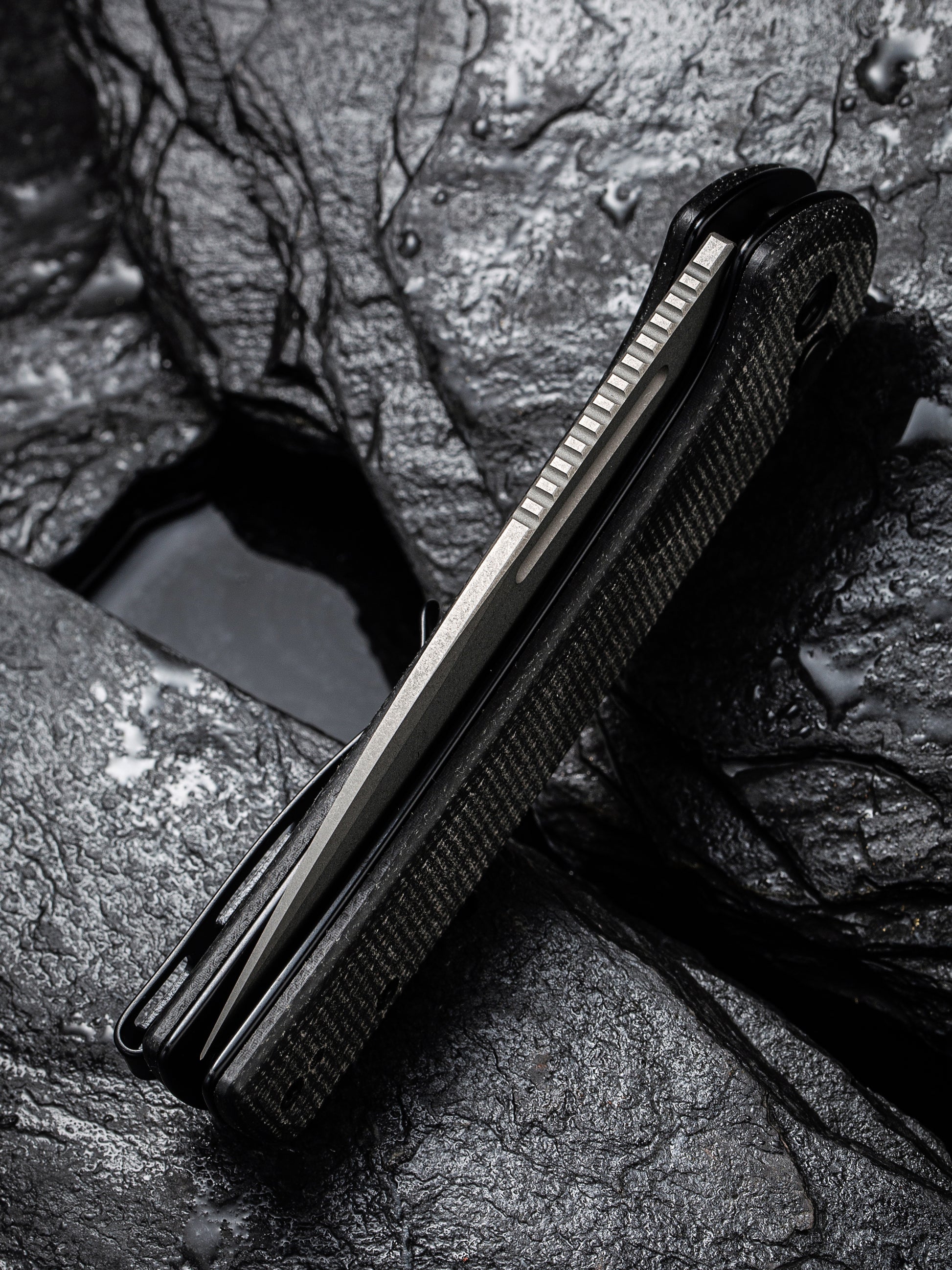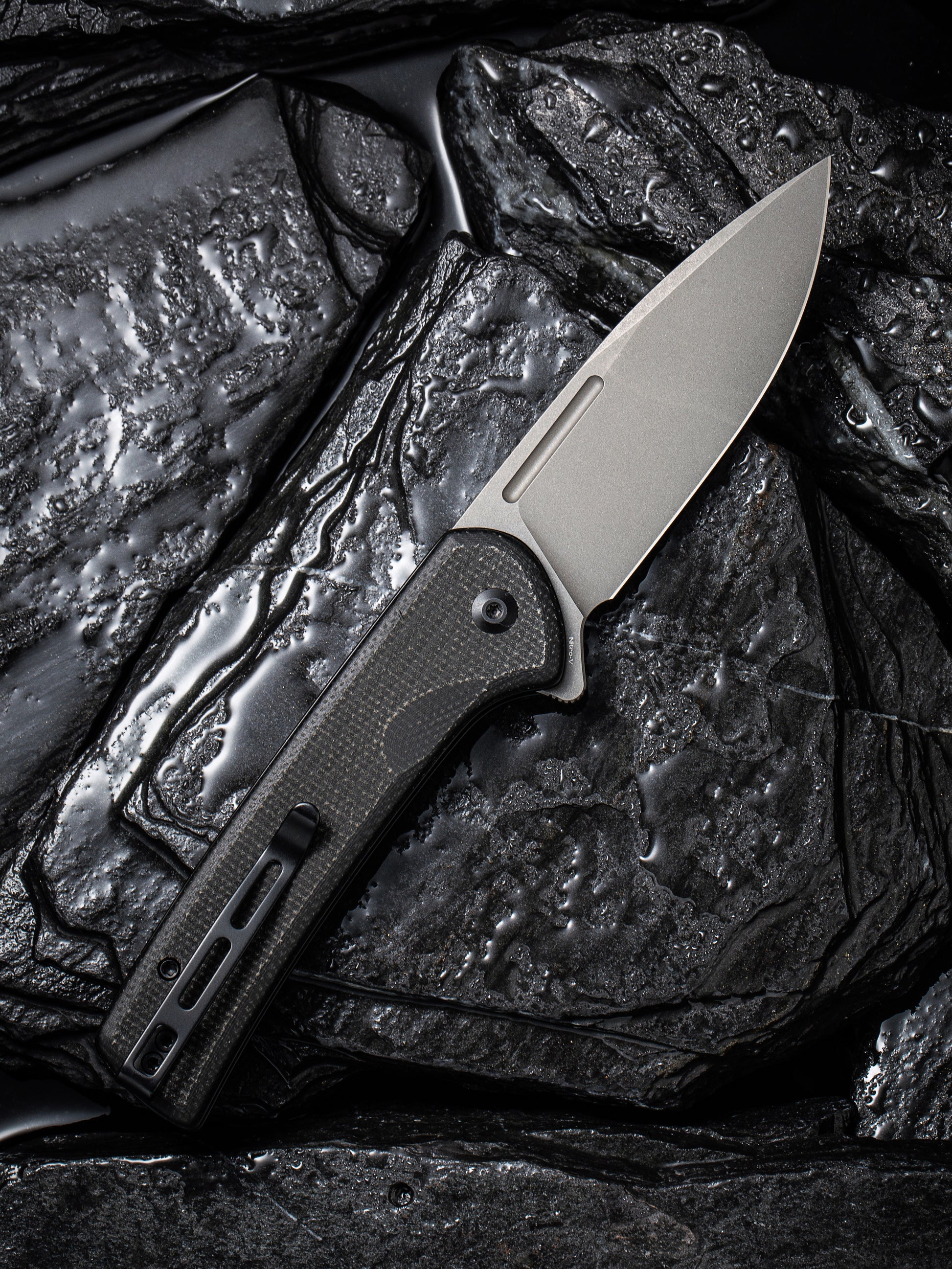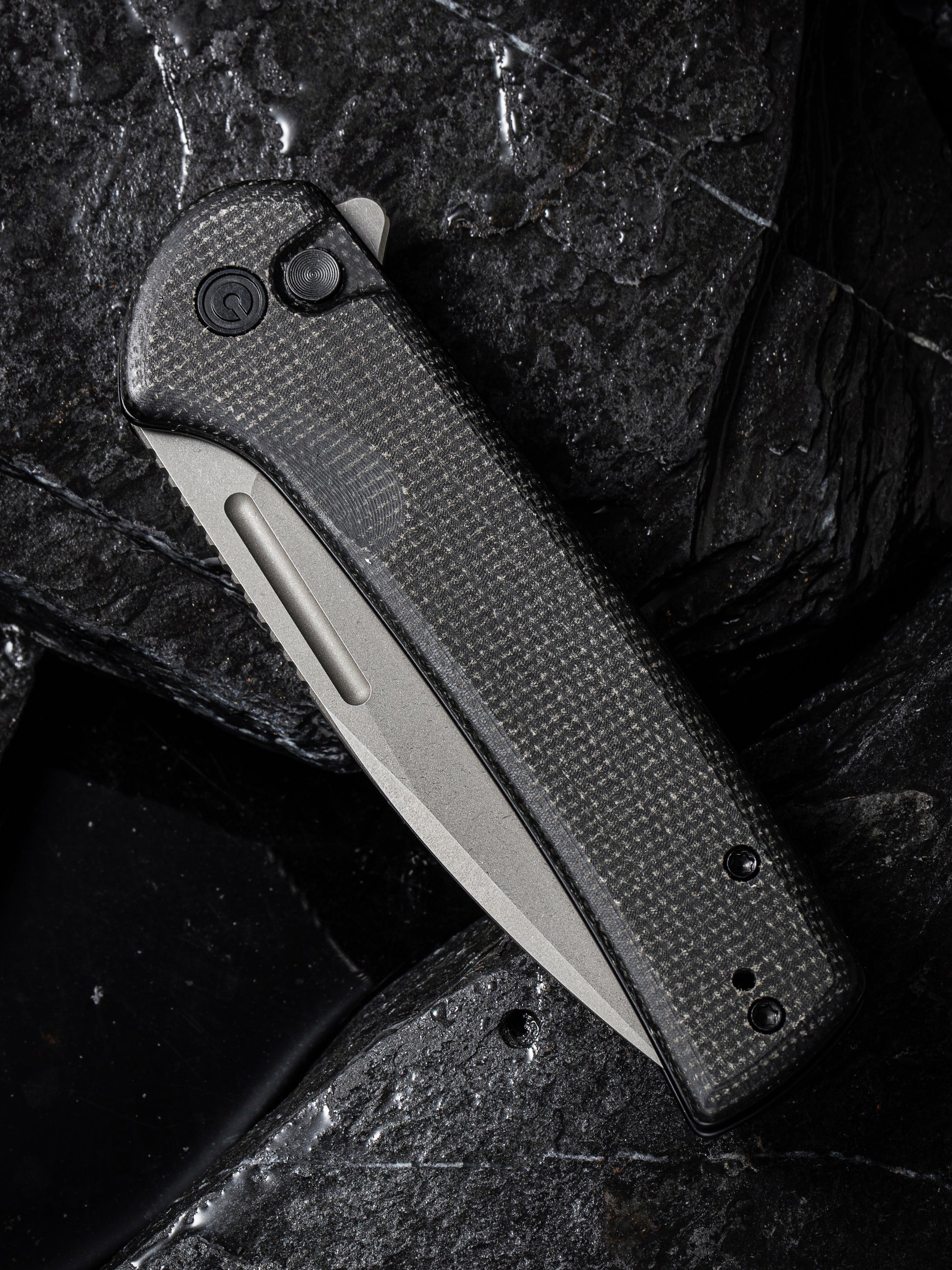 Civivi Conspirator 3.48" Nitro-V Black Micarta Button Lock Folding Knife C21006-1