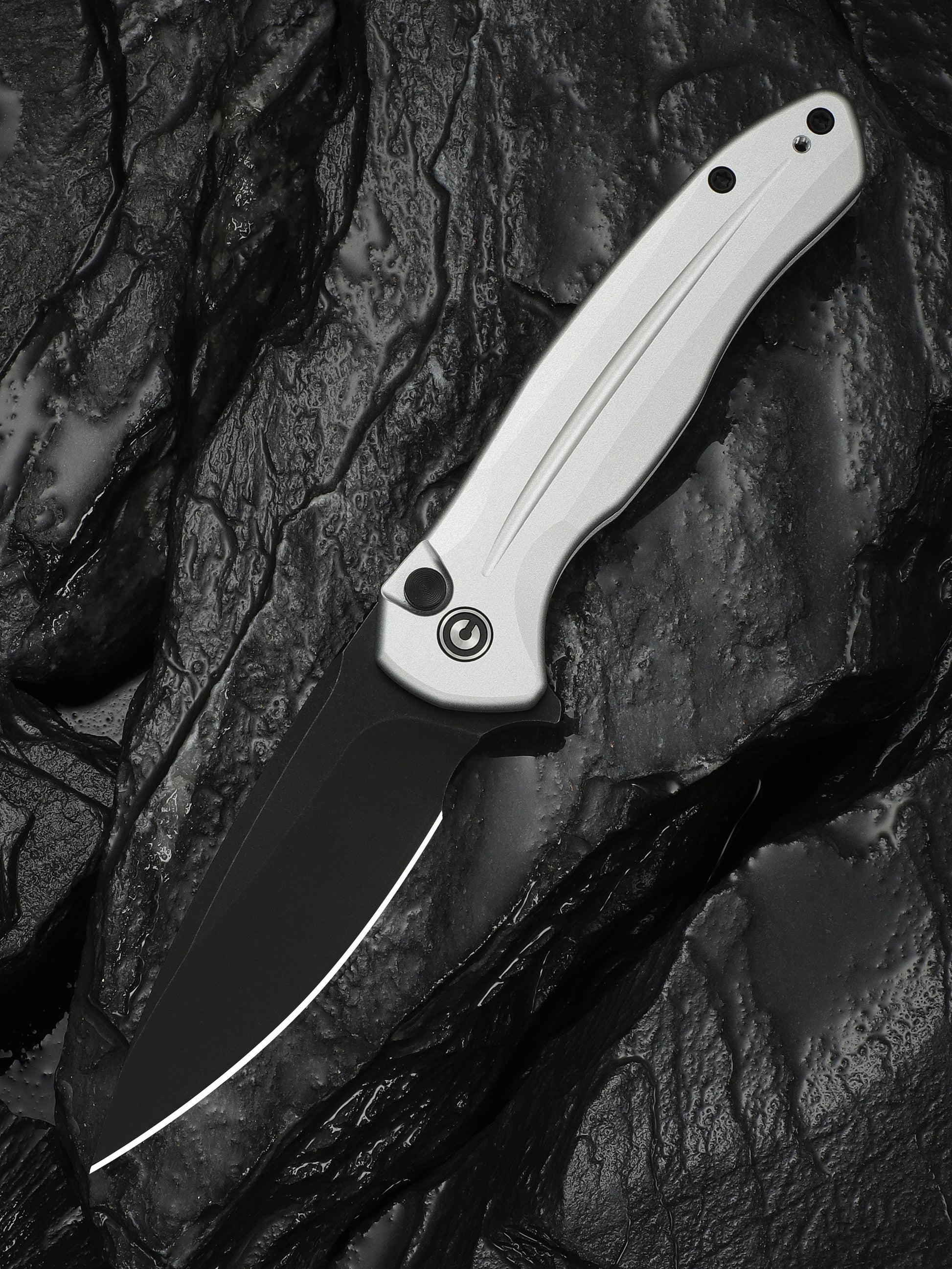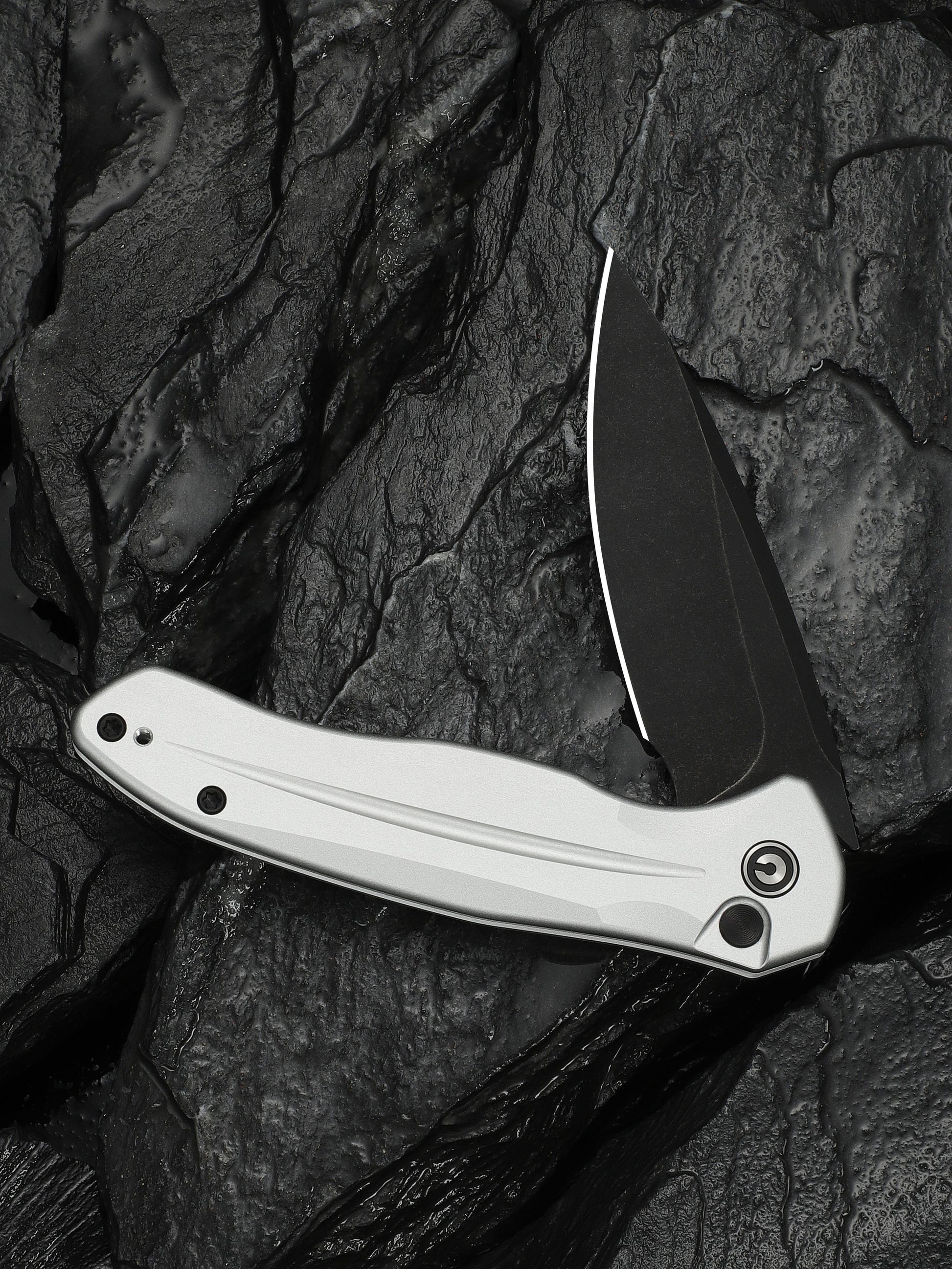 Civivi Kitefin Button Lock 3.22" Sandvik 14C28N Black / Silver Aluminium Folding Knife C24091-2