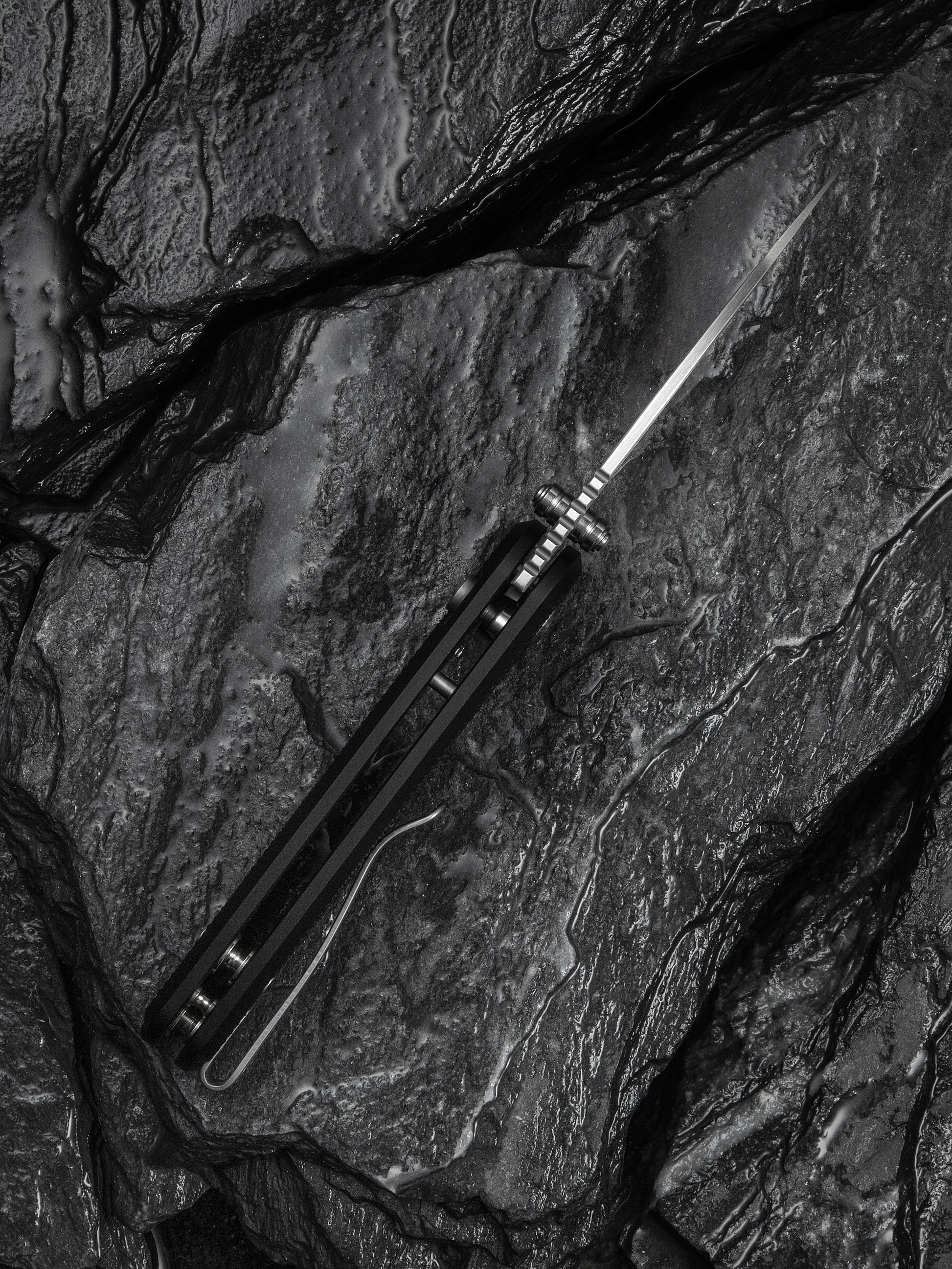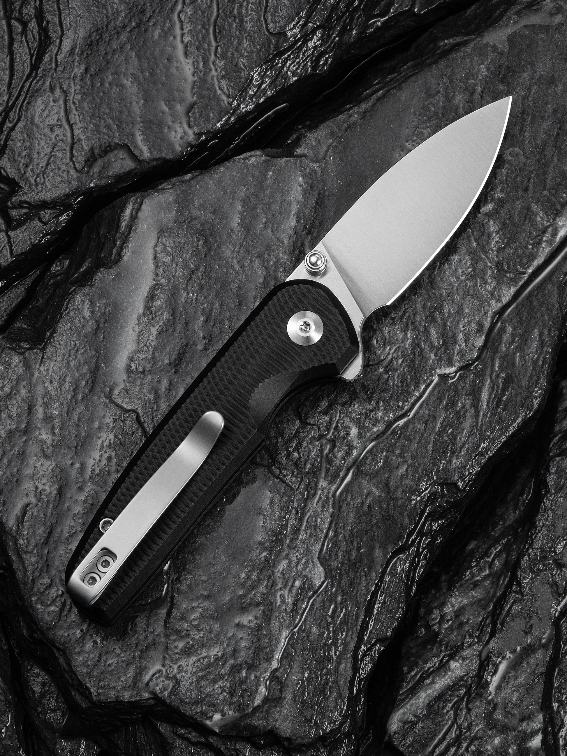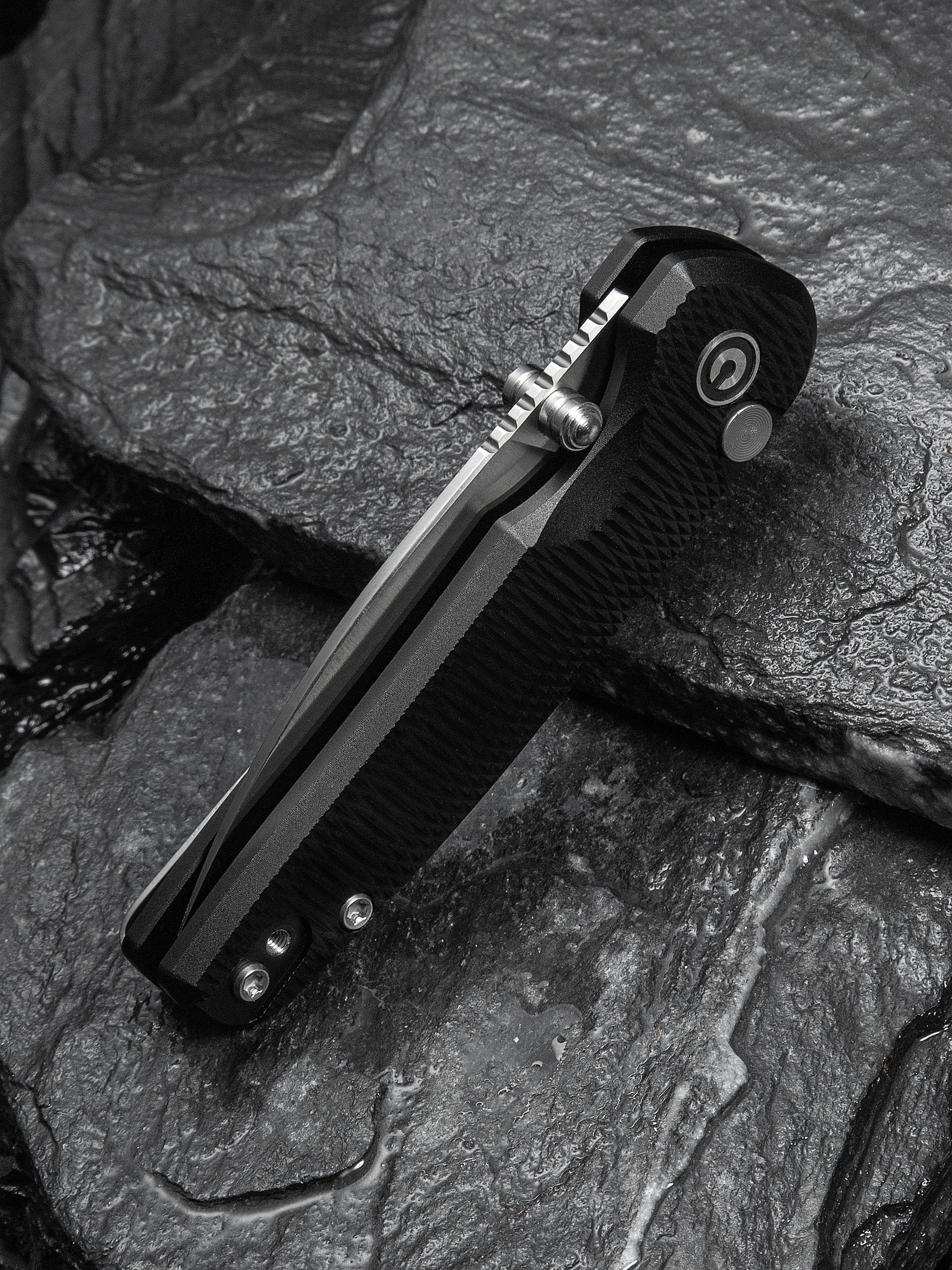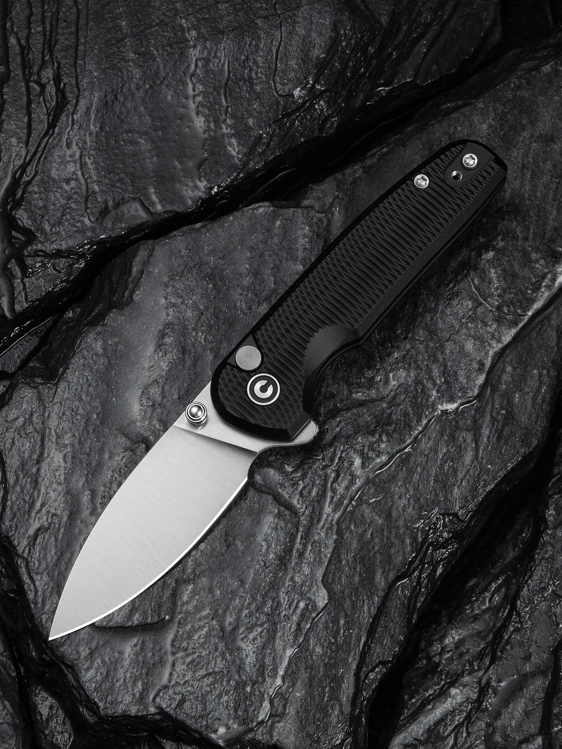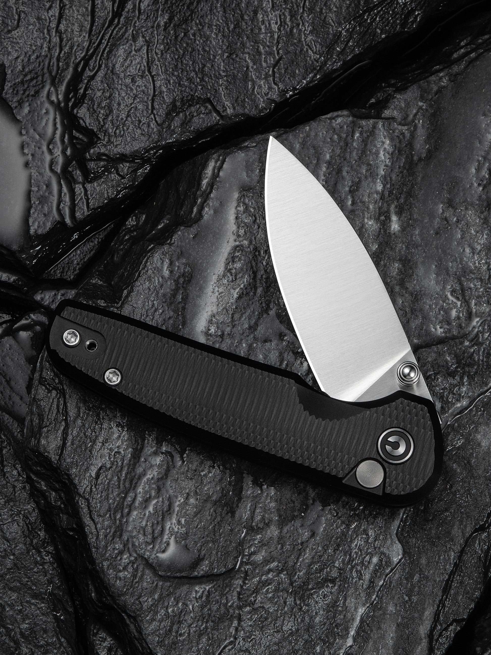 Civivi Mini Shakan 2.48" Nitro-V Ripple Black Aluminum Button Lock Folding Knife C20052F-1