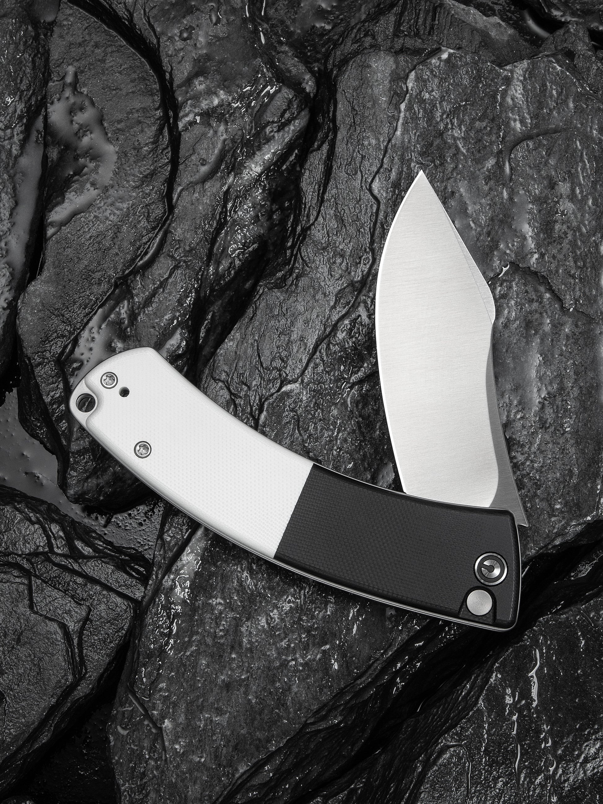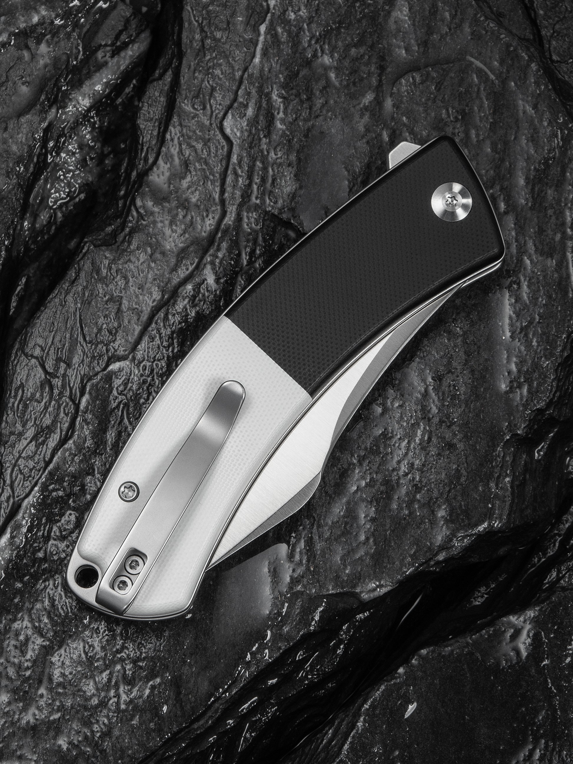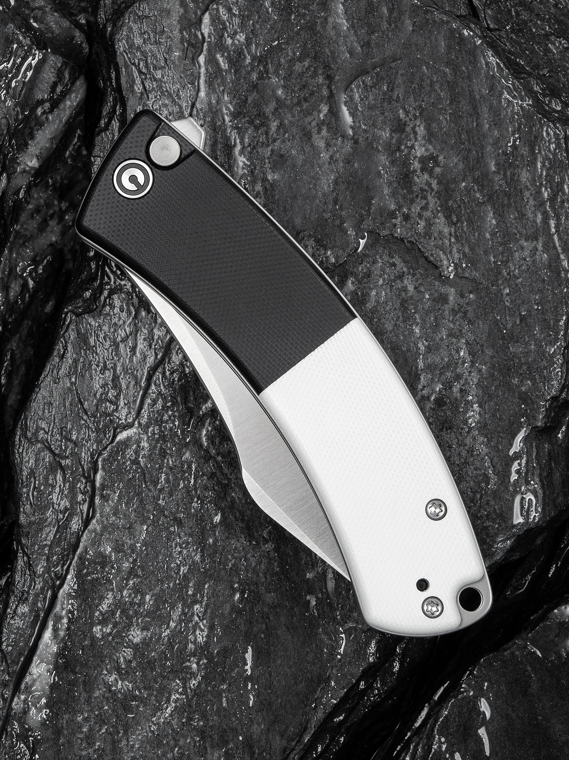 Civivi Outlaw Muk 3.47" Sandvik 14C28N Black White G10 Button Lock Folding Knife C24079-4