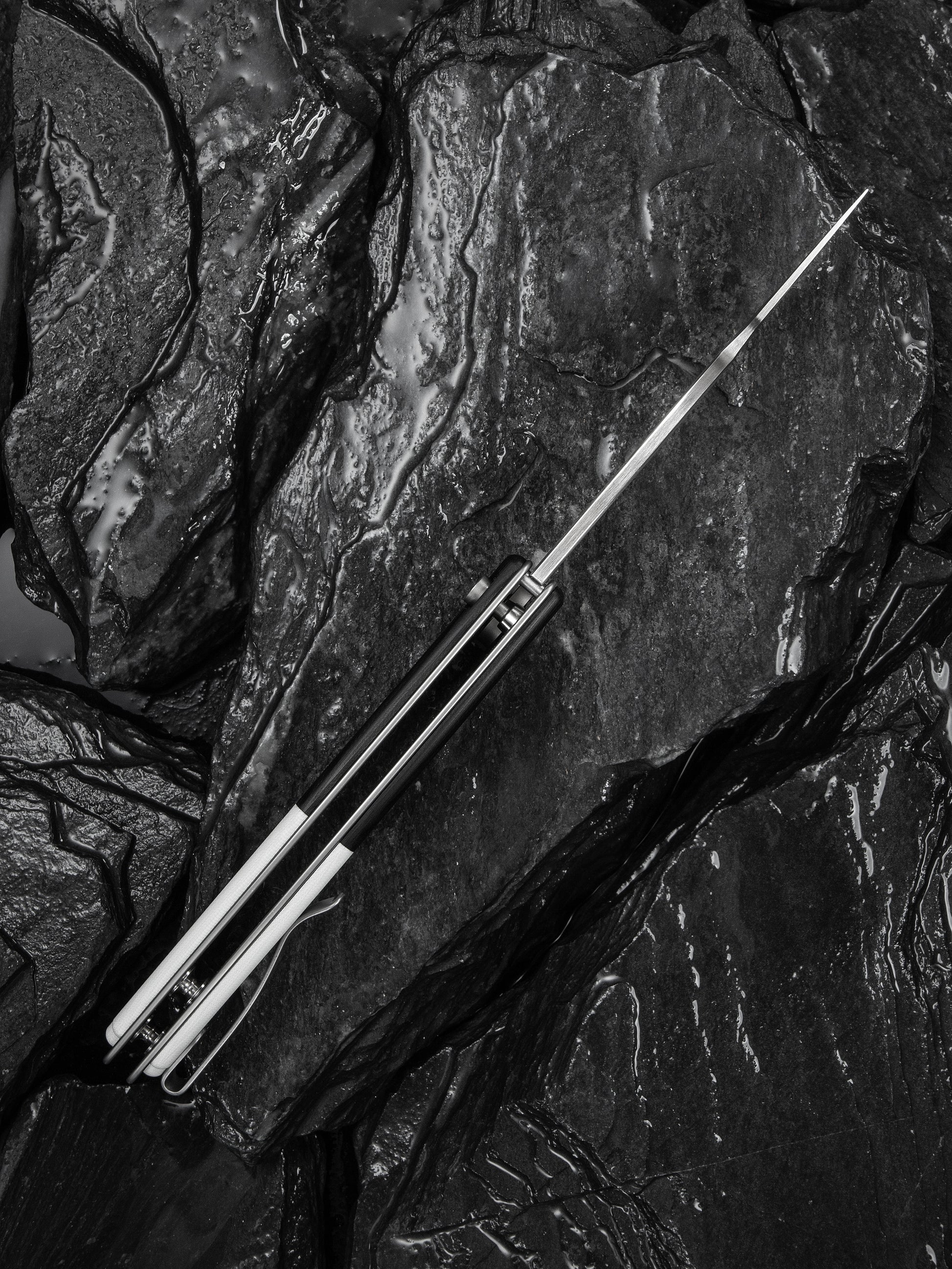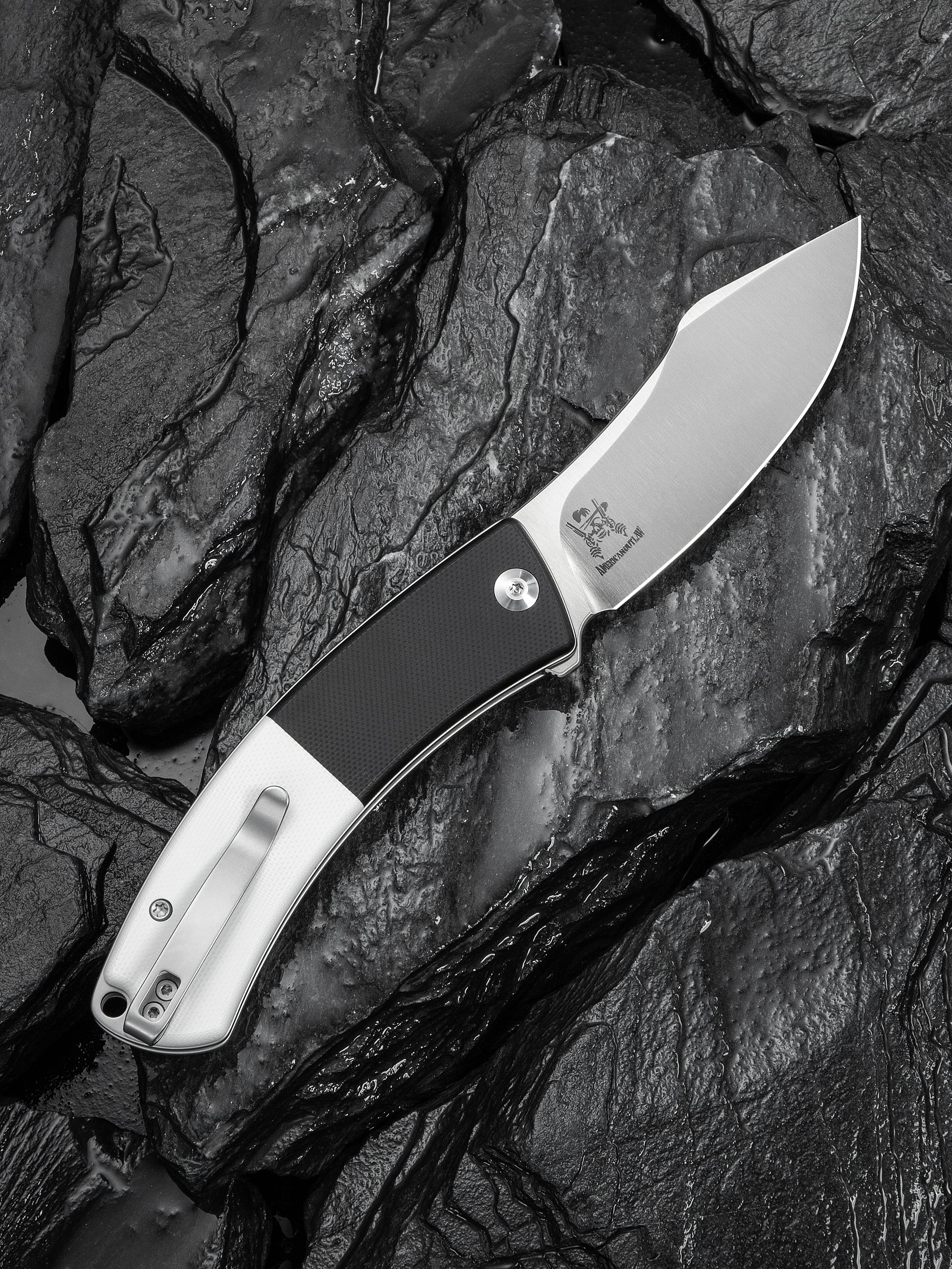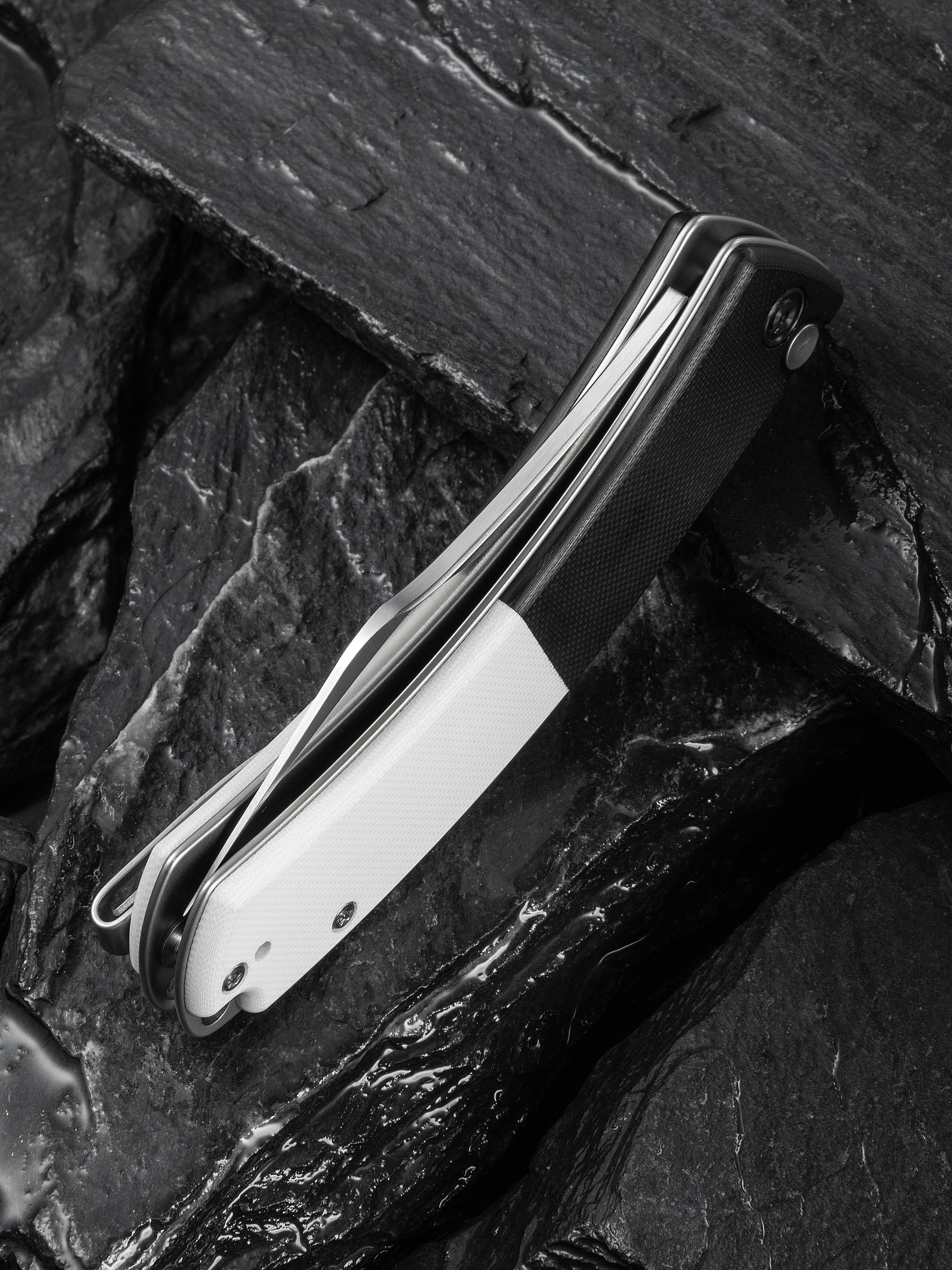 Civivi Outlaw Muk 3.47" Sandvik 14C28N Black White G10 Button Lock Folding Knife C24079-4