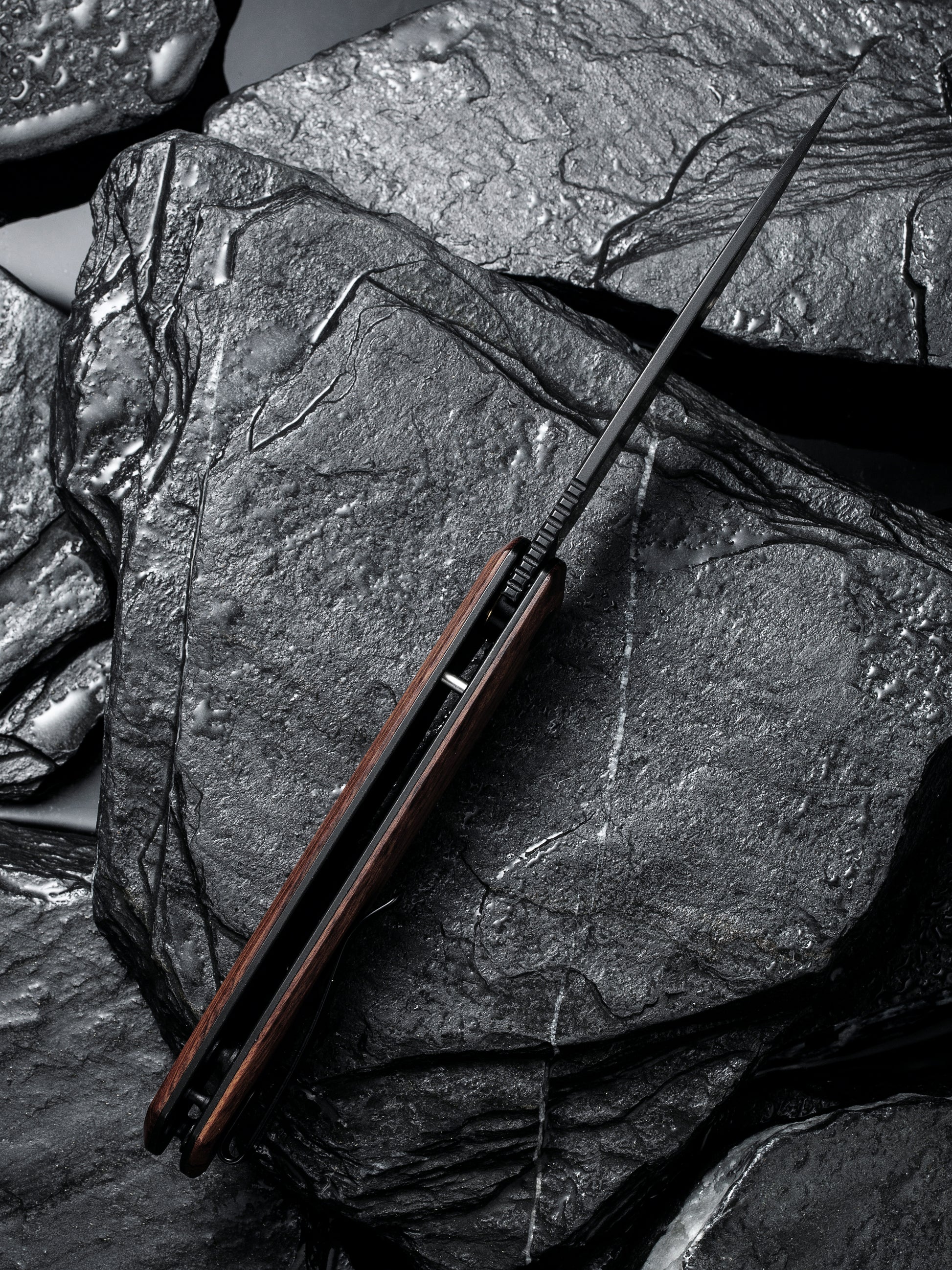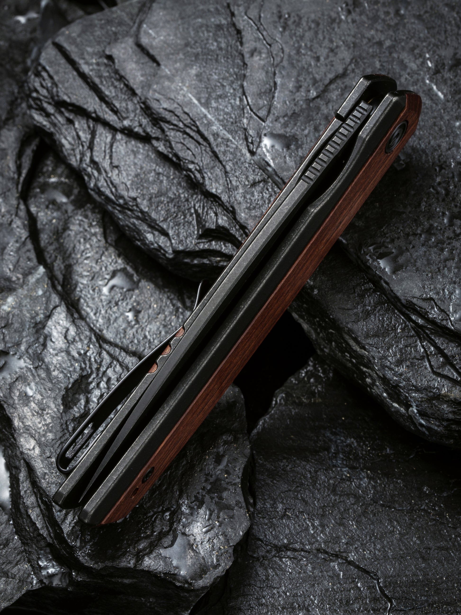 Civivi Savant 3.47" Black Stonewashed 14C28N Guibourtia Wood Folding Knife C20063B-1