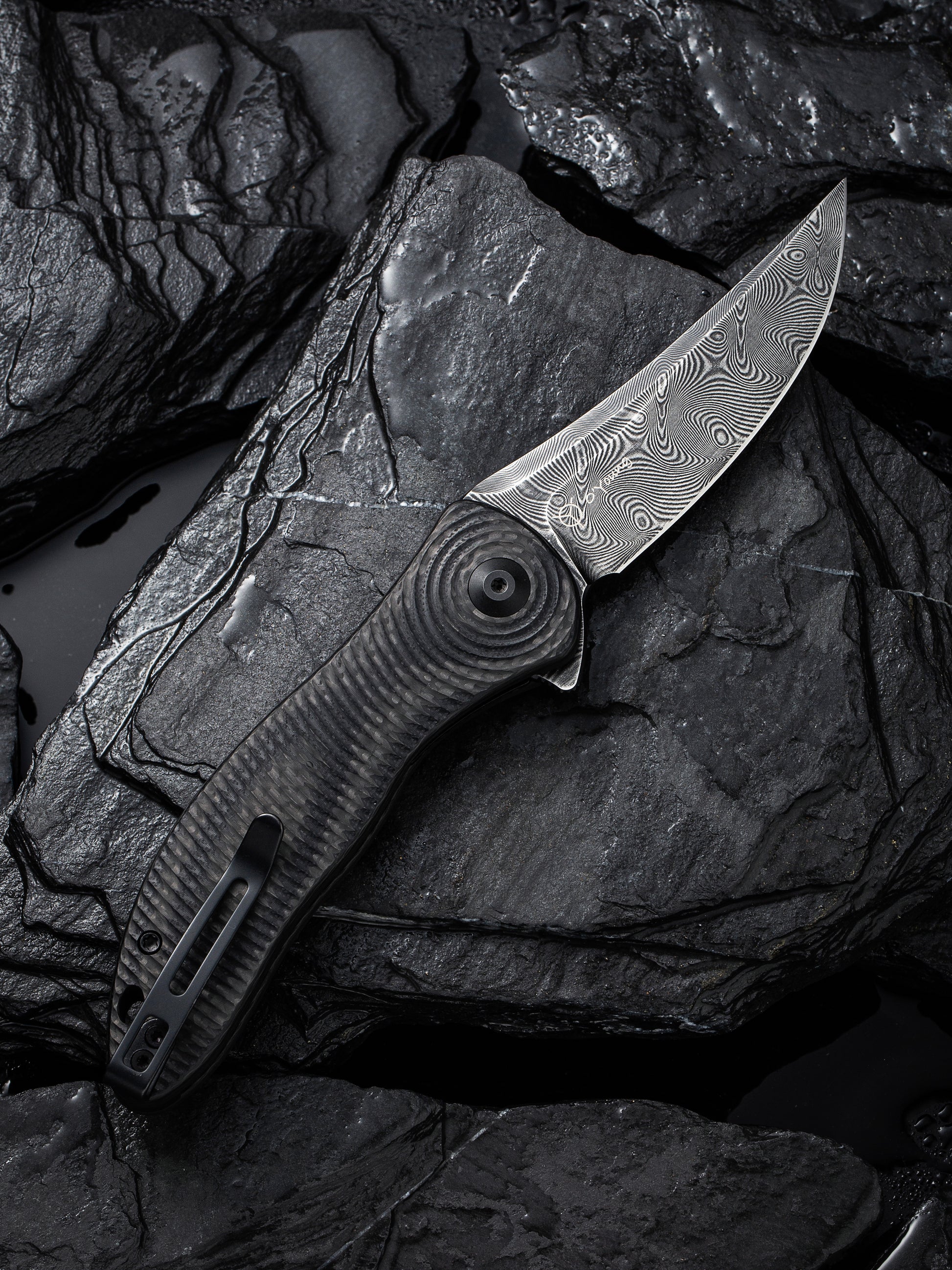 Civivi Synergy 3 3.24" Damascus G10 Twill Carbon Fiber Folding Knife by Jim O'Young C20075A-DS1