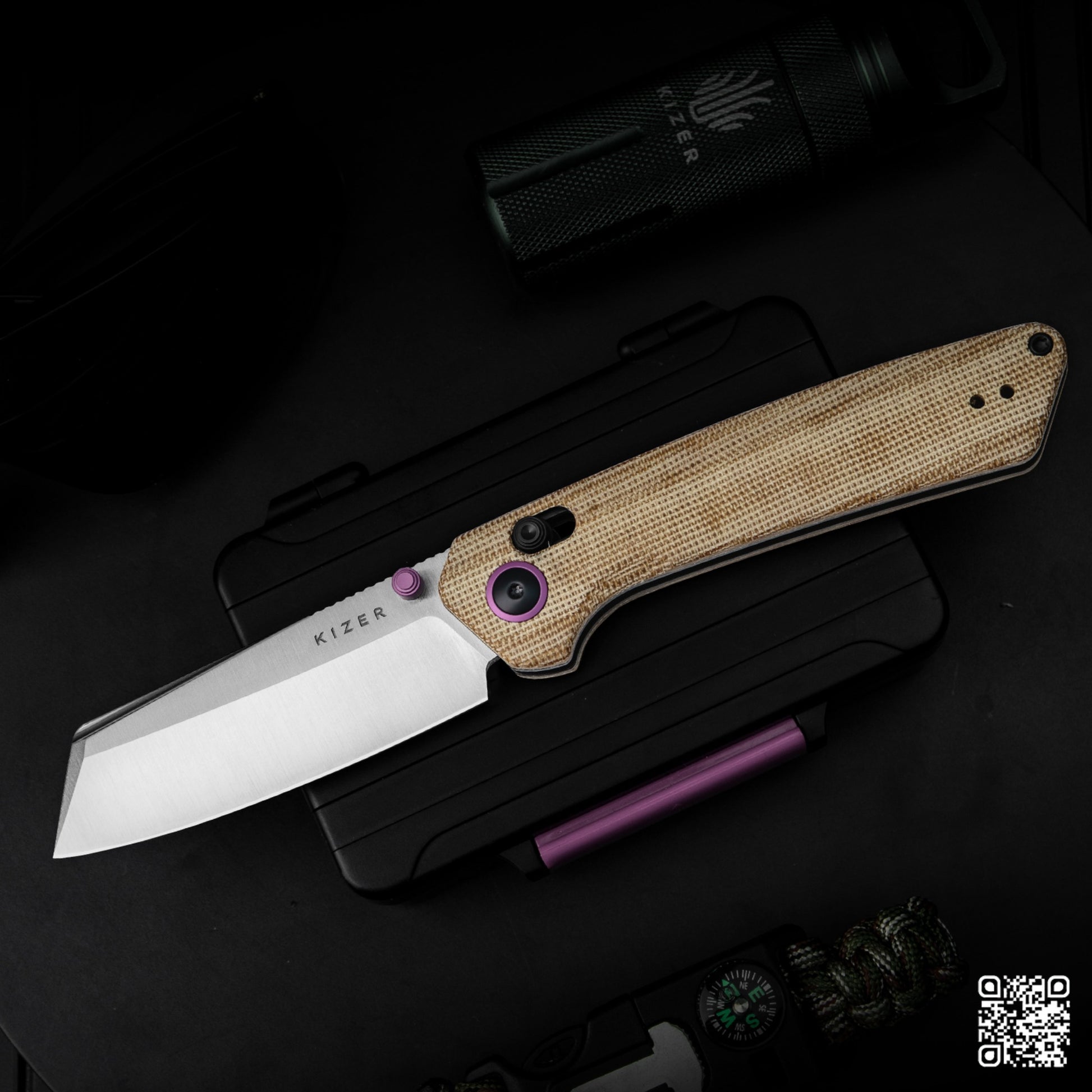Kizer Madrac Clutch-Lock 3.06" Nitro-V Brown Micarta Folding Knife V3693A2