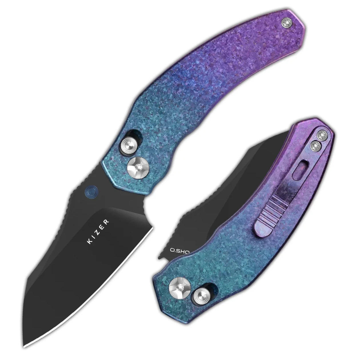 Kizer Mini Bulldog Clutch-Lock 2.51" S45VN DLC Purple/Blue Crystallised Titanium Folding Knife Ki3672SA1