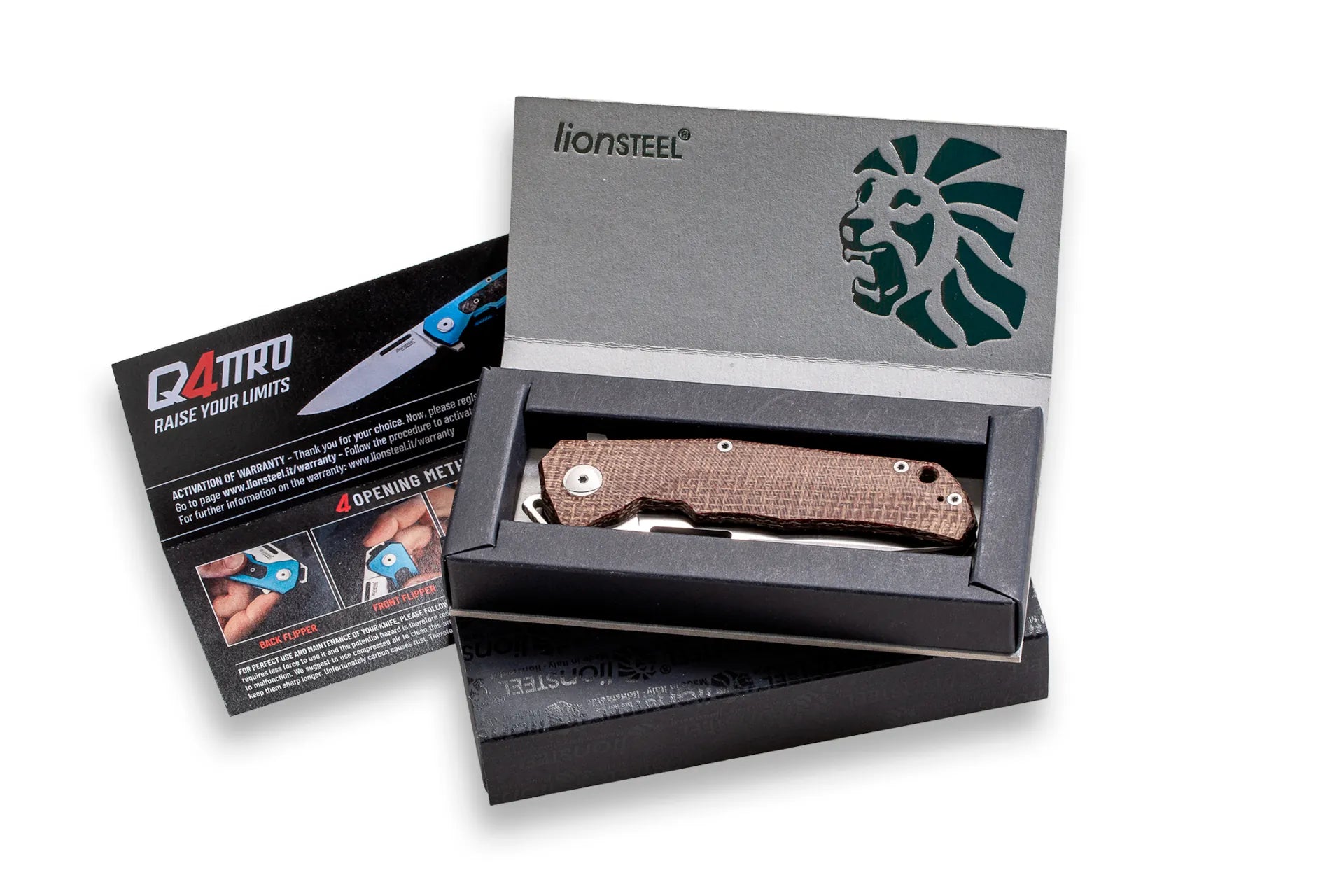 LionSteel Q4ttro 3.15" Magnacut Burlap Micarta Titanium Folding Knife Q4 BGR